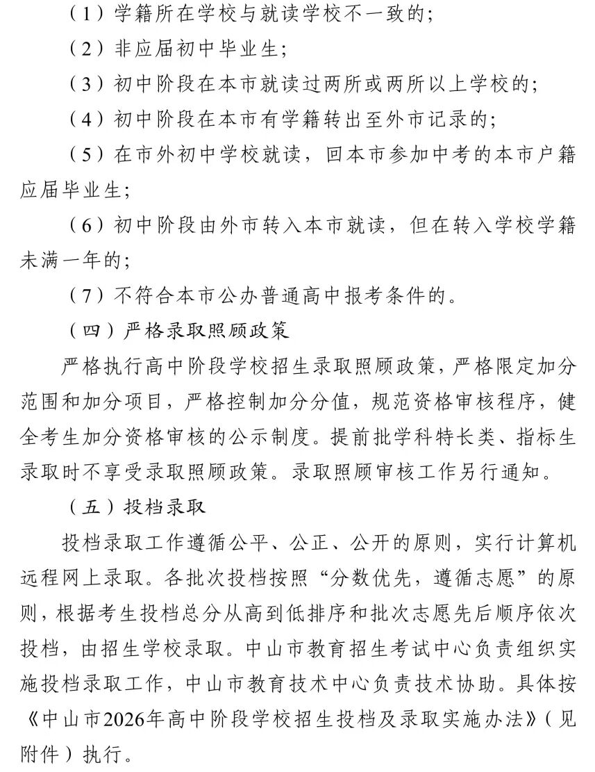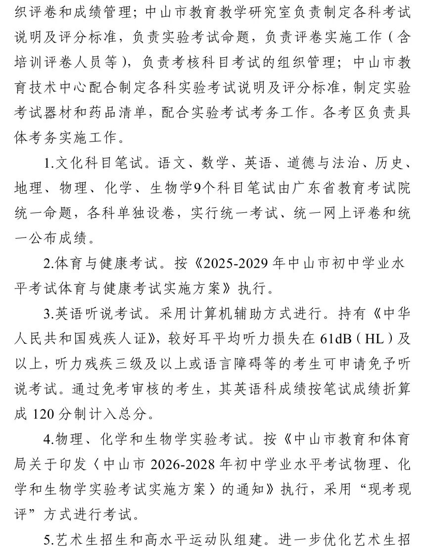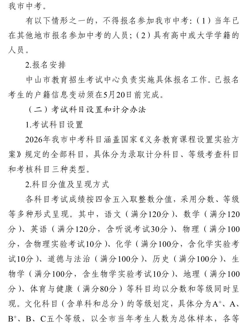 《中山市2026年高中阶段学校考试招生工作方案》已正式出台,我市2026年中考政策总体保持稳定。