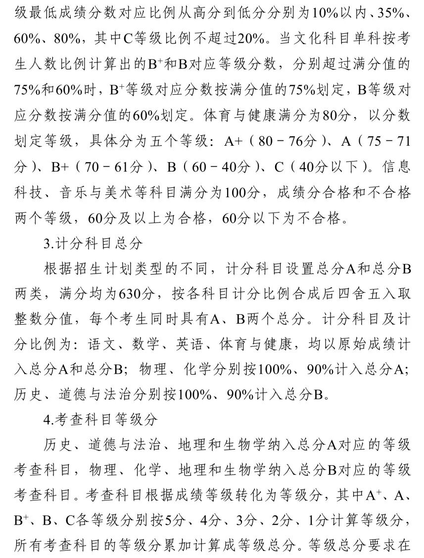 中考主体政策不变,考试科目仍分为录取计分科目、等级考查科目和考核科目三种类型,涵盖国家《义务教育课程设置实验方案》规定的全部科目;计分科目和计分办法不变,继续实施总分A和总分B分别对应高中A、B两类招生计划的录取模式,实行考后网上志愿填报方式,分四个批次进行录取。