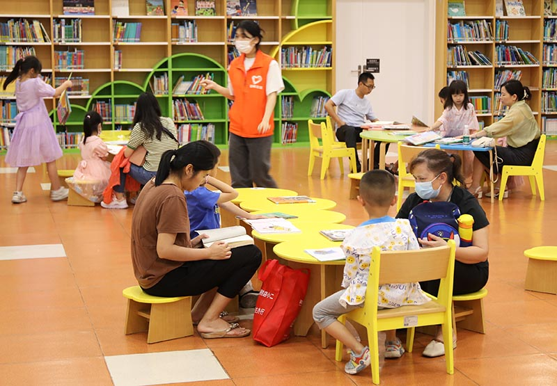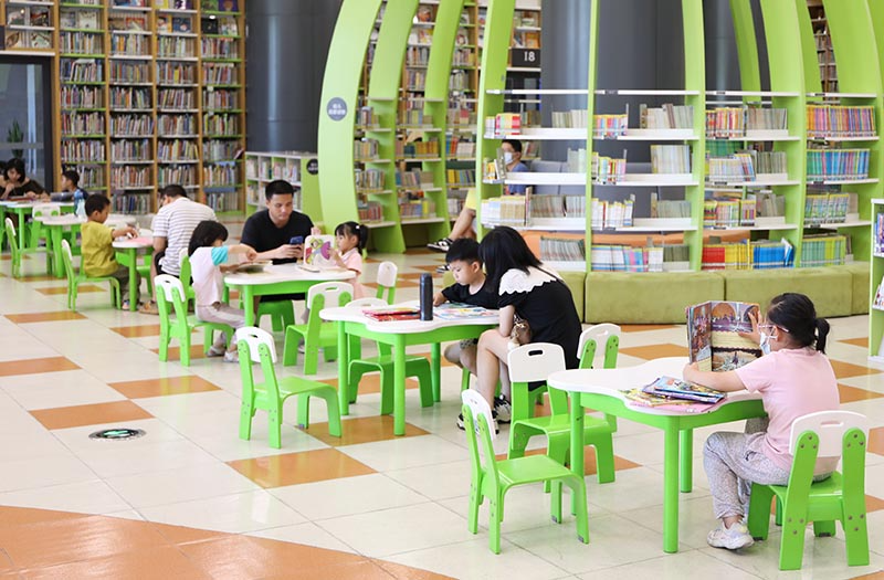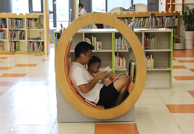 中山纪念图书馆良好的环境吸引了家长和孩子们在这里一起阅读书籍。(摄影:王云)