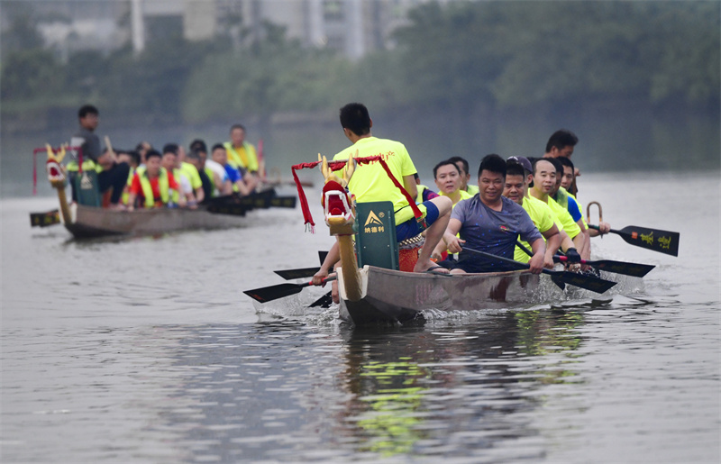 冒雨坚持训练的队员梁永洲说,自己从小深受石岐龙舟文化的熏陶,已经划了近30年龙舟。他笑称自己已经找到了“接班人”,因为自己八岁的儿子对龙舟文化表现出很大的兴趣,在两年前便开始接触划龙舟。