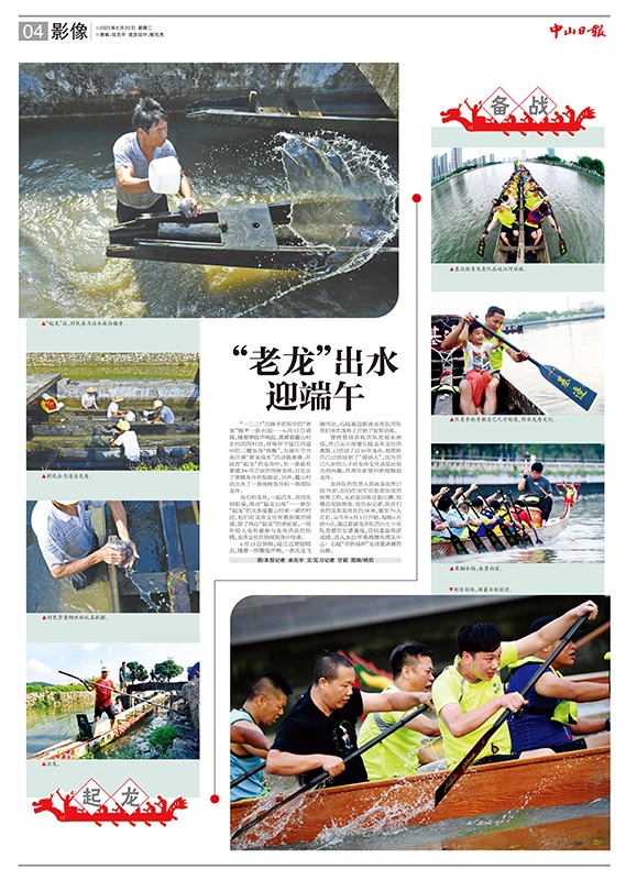 “一二三!”沉睡于淤泥中的“老龙”随声一跃而起……6月12日清晨,随着锣鼓声响起,黄圃镇鳌山村北约坊的村民,将保存于猛江河道中的三艘龙舟“唤醒”,为端午节当天开展“游龙戏水”活动做准备。在这次“起龙”的龙舟中,有一条是有着逾200年历史的传统龙舟,它见证了黄圃龙舟的发展史。另外,鳌山村还出水了一条传统龙舟和一条国际龙舟。
