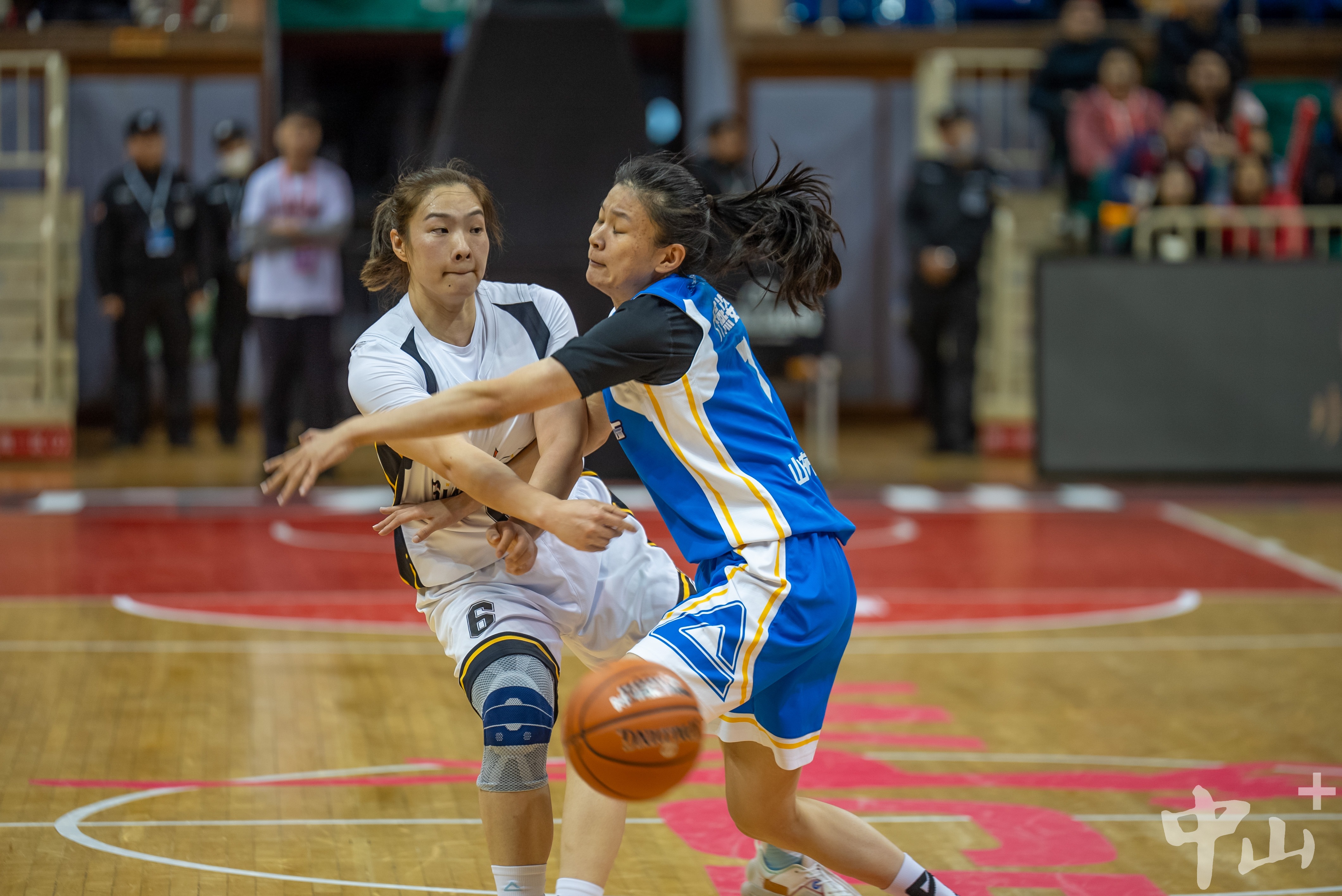 ▲来自广东女篮的杨舒予(右)拿球进攻。记者 黄艺杰 摄