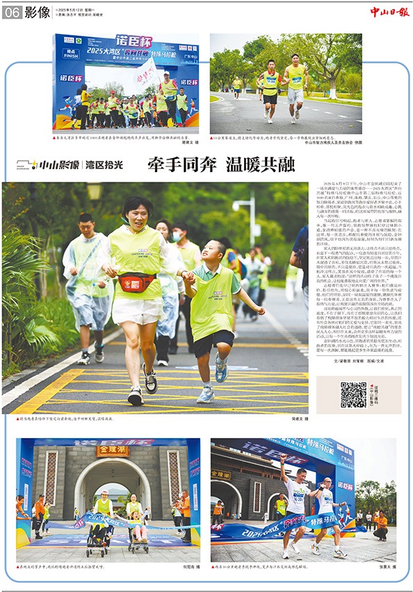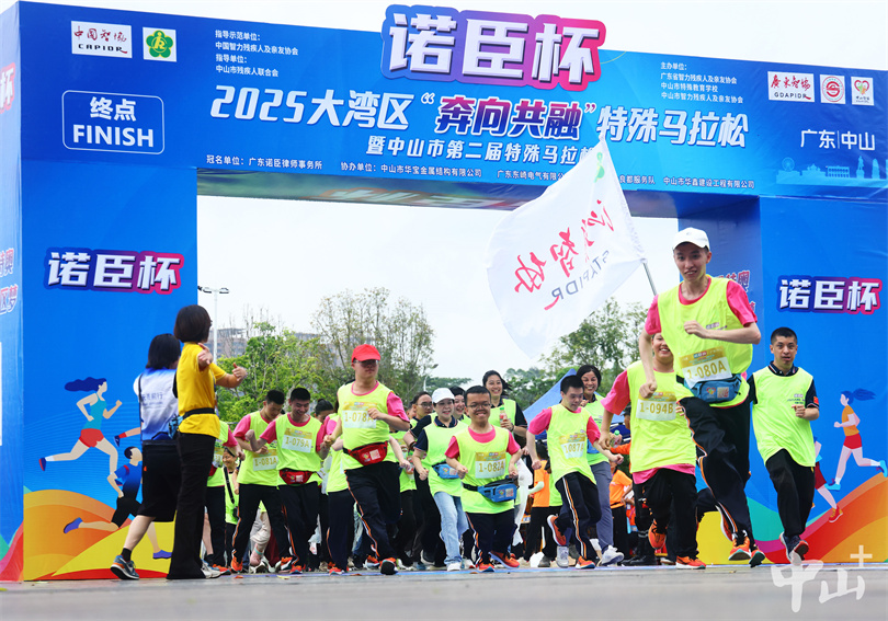 2025年5月9日下午,中山市金钟湖公园迎来了一场充满爱与力量的体育盛会——2025大湾区“奔向共融”特殊马拉松暨中山市第二届特殊马拉松。近1000名来自香港、广州、珠海、肇庆、汕头、中山等地的智力障碍者、家庭陪跑员等跑步爱好者齐聚于此,心手相牵、喜悦相聚。荧光色的跑衣与碧水相映成趣,心跳与湖面的涟漪一同共振,把这座城市的包容与激情,融入每一次呼吸。