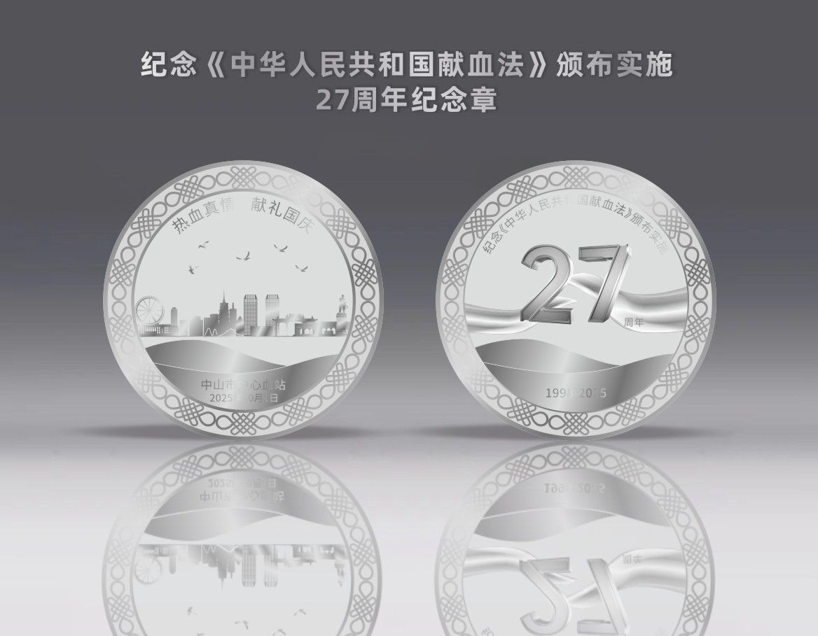 为了感谢每一位爱心人士的付出,中山市中心血站特意准备了纪念《中华人民共和国献血法》颁布实施27周年纪念章。这枚纪念章不仅是对献血者爱心的见证,更是这个国庆最有意义的“限定礼物”。