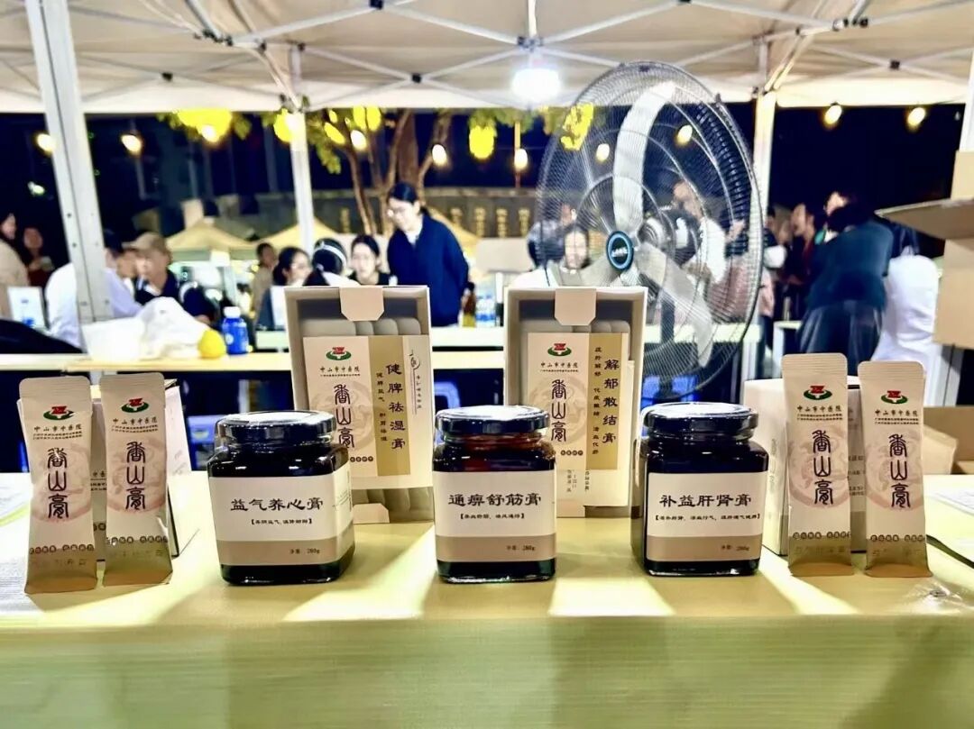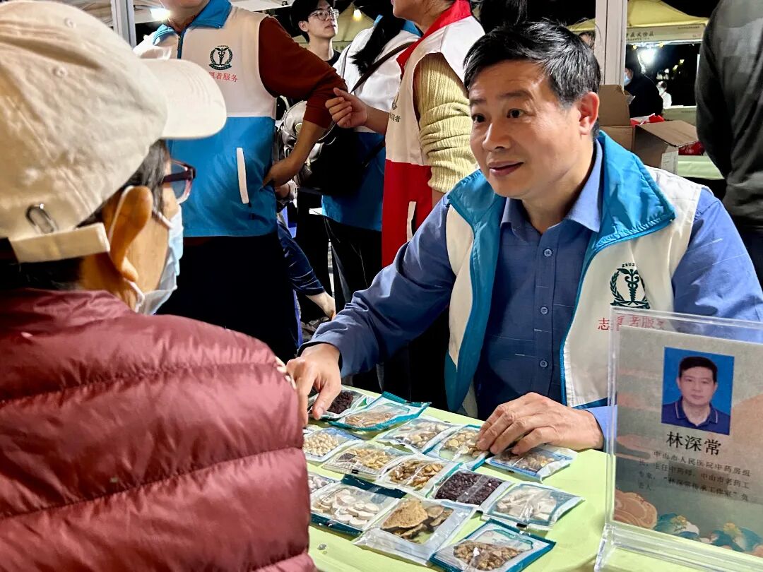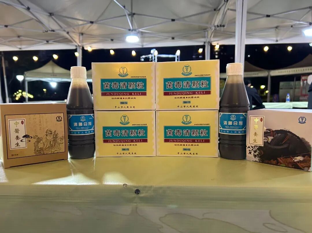院内制剂膏方展示区人头涌动。中山市老药工赖岳晓现场为大家科普中药性味归经与日常应用,专业又接地气的分享引得众人驻足聆听。中山市人民医院“明星制剂”菌毒清、中山市中医院定制膏方、中山市黄圃人民医院的多种制剂等,是市民居家保健的常备之选,在夜市就能开方直接带回家,非常便民。