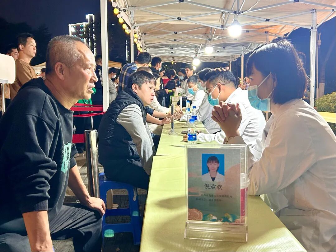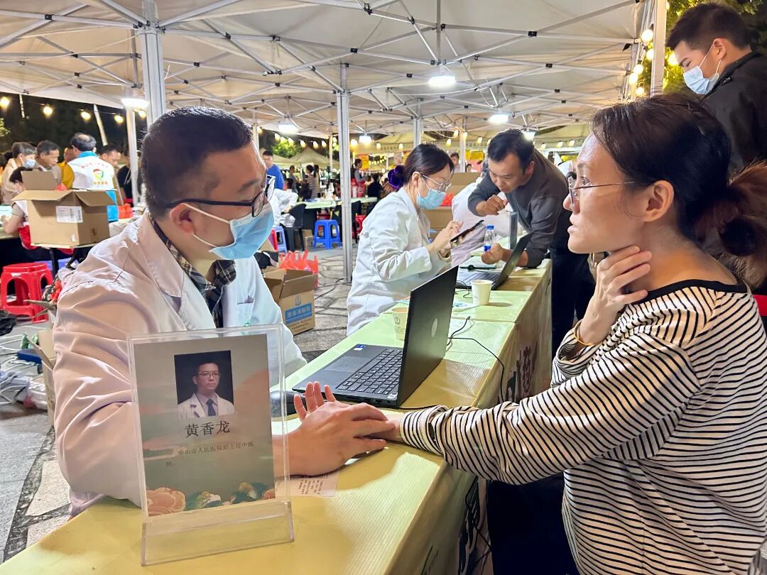 中山市人民医院、中山市中医院、中山市黄圃人民医院等名医专家下班后照旧“出勤”,来到夜市为街坊邻居们一对一免费问诊把脉,筑起寒夜里最温暖的“健康守护”。据不完全统计,不管酷暑严寒,全年全市各医院超500位名医专家到夜市“出摊”,为全市人民提供高质量、有温度的义诊咨询和健康服务。