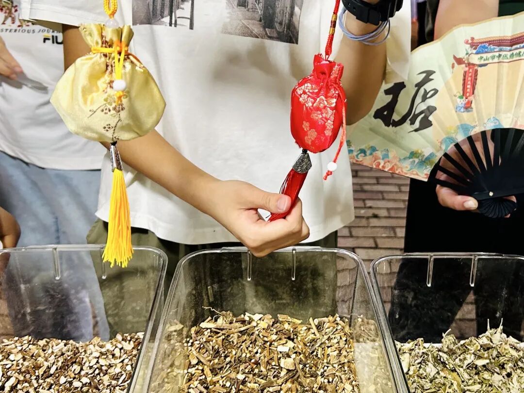 在药食同源品鉴区,人们可以品尝到:黄精茶、黄精枣泥糕、黄精梨膏软糖等黄精系列零食,养生与美味都有了!“药食同源”理念源远流长。中医药夜市启动以来,“中药/草本零食”在夜市秀出健康新花样:中药烤奶茶、鸭屎香草本冰淇淋、中药棒棒糖、黄精威化饼、爆浆芝麻丸、铁皮石斛柠檬茶等爆款零食也持续火出圈,吸引众多脆皮打工人一到周末便来这里“去班味”,卷工作不如卷健康,才是王者666……