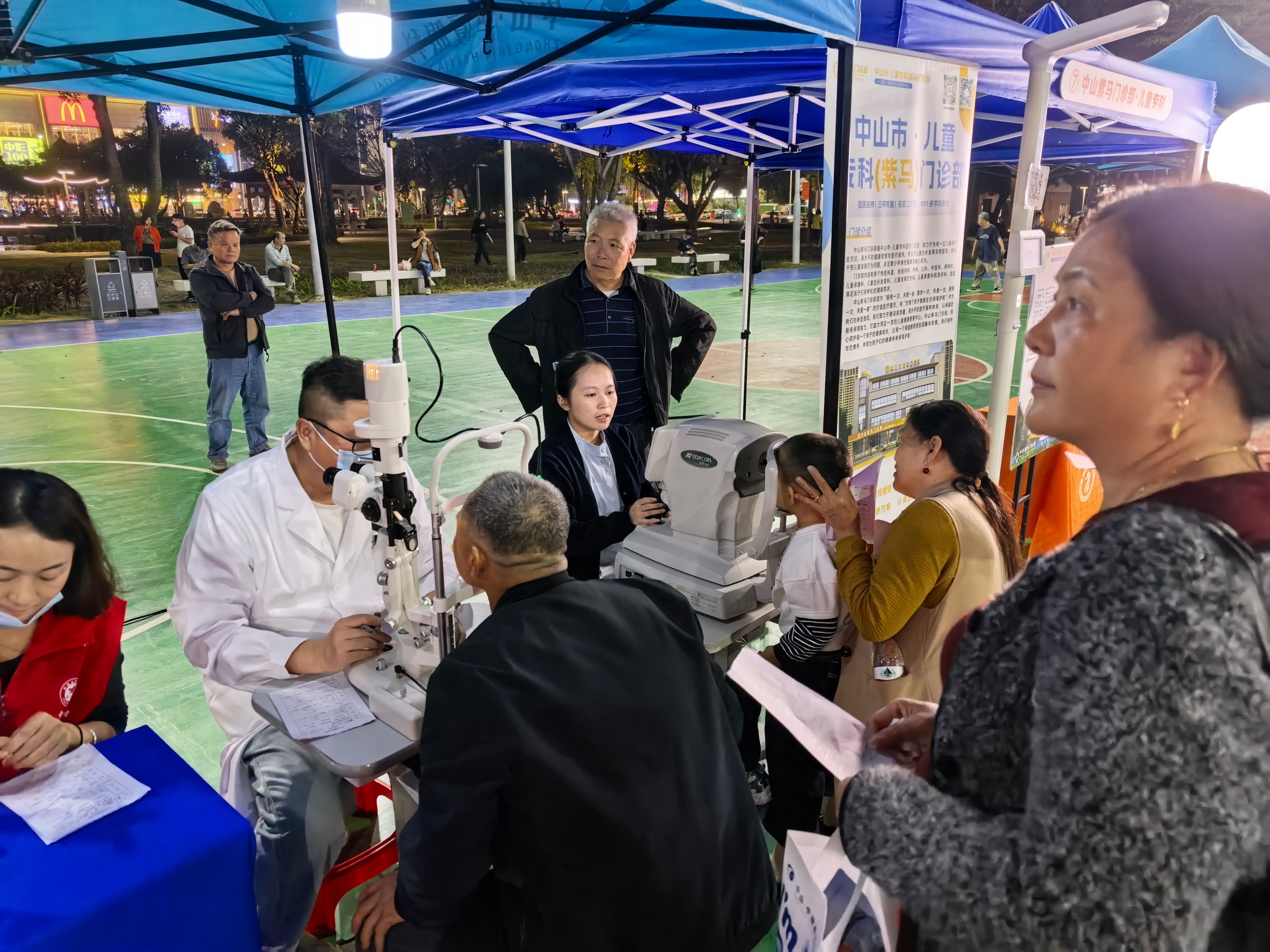 活动现场,中山华厦眼科医院的公益义诊摊位前始终排起长队。医护人员耐心细致地为居民提供免费视力检测、眼底基础筛查、干眼症评估等服务,并针对中老年人群高发的白内障、老花眼、青光眼及干眼症等问题进行一对一专业解答,同步开展科学护眼知识普及和个性化用眼指导。