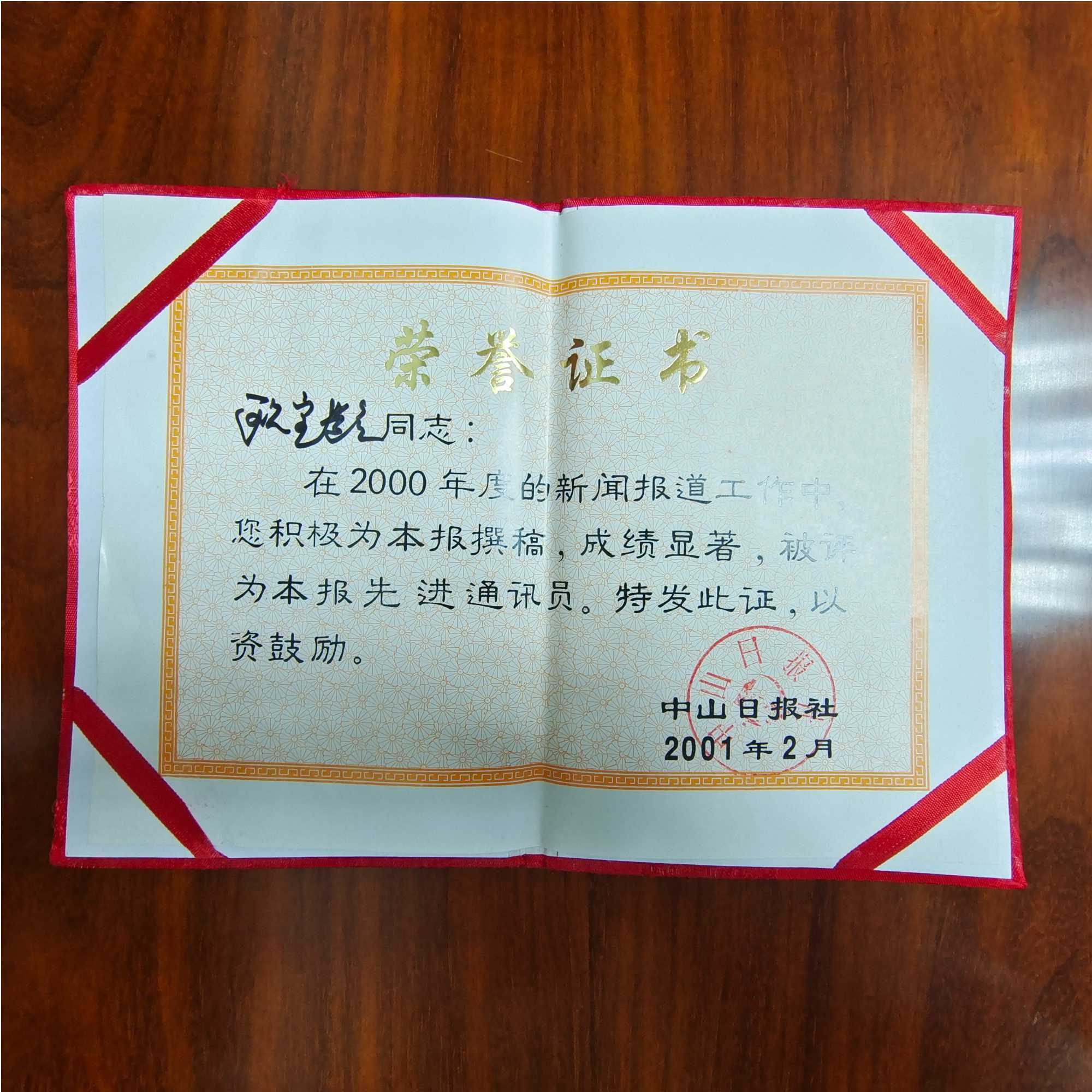 自《中山日报》复刊起,本人即开始向原《中山报》投稿并获发表,例如1994年1月12日头版头条《我市外向型经济有重大举措》,报道两地将合资开发荒置土地发展工业村和商住区的重大举措。多年来本人在《中山报》、《中山日报》积极投稿并获发表的报道和各种文章数十篇,还荣幸地被评为先进通讯员。在此,本人对报社表示衷心的感谢!