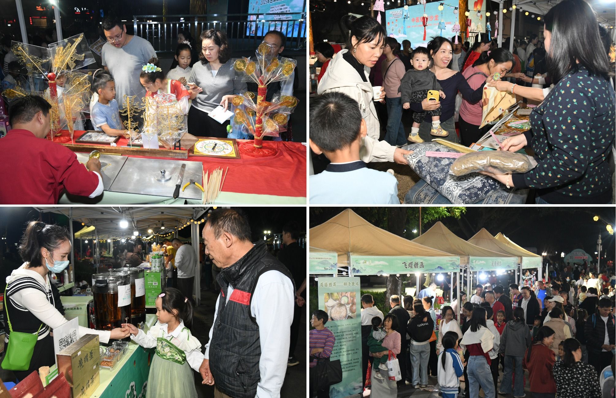 药膳作为一种独特的养生方式,备受推崇。在健康夜市逛吃也是正经事。在药食同源品鉴区,由古镇人民医院专门熬制的两款中药保健茶、如是心东方食养现场熬煮的黄精茶供群众免费试饮,还能续杯!暖心暖胃的椰子鸡汤,椰子肉益气健脾,椰汁生津润燥,是冬季滋补佳品。非遗糖画传承人梁师傅用麦芽糖一番“龙飞凤舞”,各种诱人的美味糖画跃然板上,小朋友们欢喜带回家。还有爆浆黄精梨膏软糖、黄精枣泥糕、黄精威化饼干等成为当晚爆款新零食,每一款都蕴藏着中医药食同源智慧,让人边逛边吃边养生。