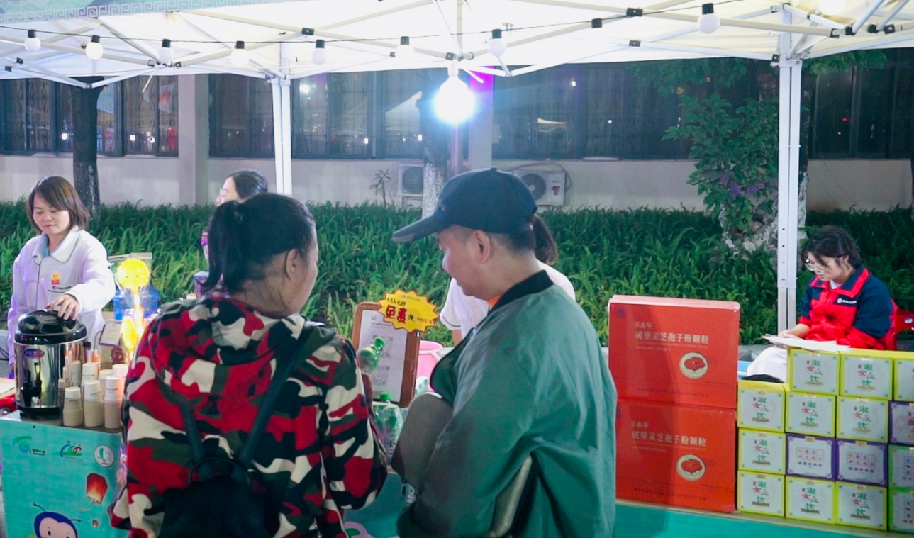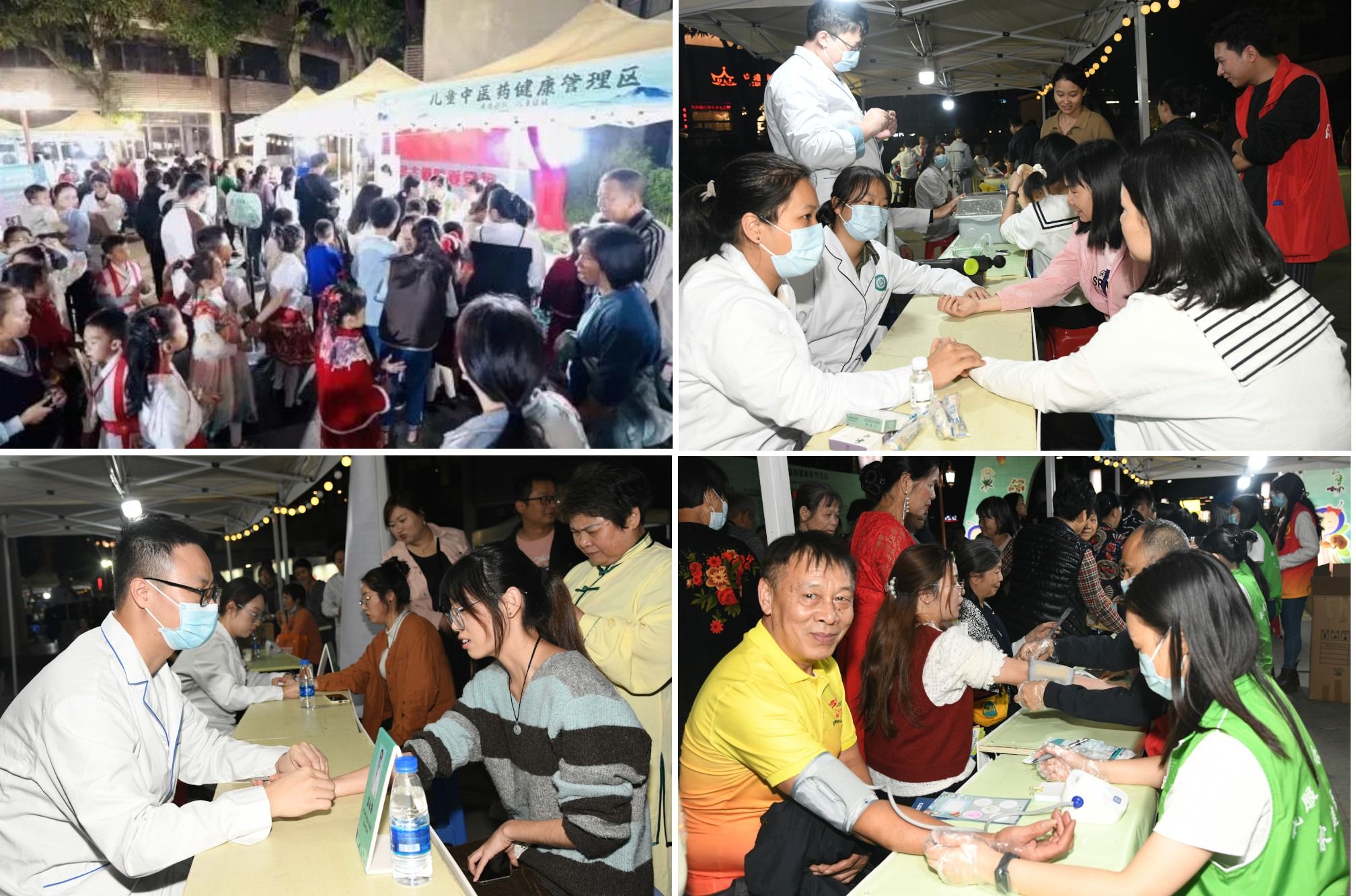 趣玩中医药互动更是精彩纷呈:骑动感单车燃烧卡路里,还能锻炼心肺;中药猜灯谜游园、投掷中药包玩偶、“趣”玩中医药集章打卡等互动,男女老少皆可“玩”,艾草锤、养生梳等伴手礼轻松get,健康知识与欢声笑语盈满公园夜市。