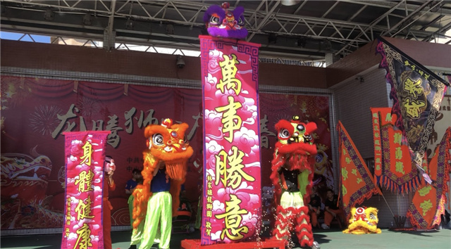 公园舞台上,6支龙狮队伍轮番上阵,每支队伍的表演各具特色、十分喜庆。有的是二狮闹春,两只火红的狮子随着锣鼓声跳跃翻滚、身体扭动、动作灵活。有的是雄狮踩凳桩,狮子在高低不一的桩子上,时而俯身游走,时而凌空腾跃,活灵活现地展现出舞狮的魅力。紧接着,一条金龙翻动着身子,在数名队员的齐力舞动下,展示了盘、游、滚、腾、穿、缠、戏等传统舞龙的表演形式,飞腾的金龙还绕到人群中,与现场观众互动,让大家近距离感受舞龙的欢乐。在表演尾声,造型多样的狮子齐亮相,其中一只狮子爬上高杆,寓意步步高升,一起为市民群众送上新春祝福。