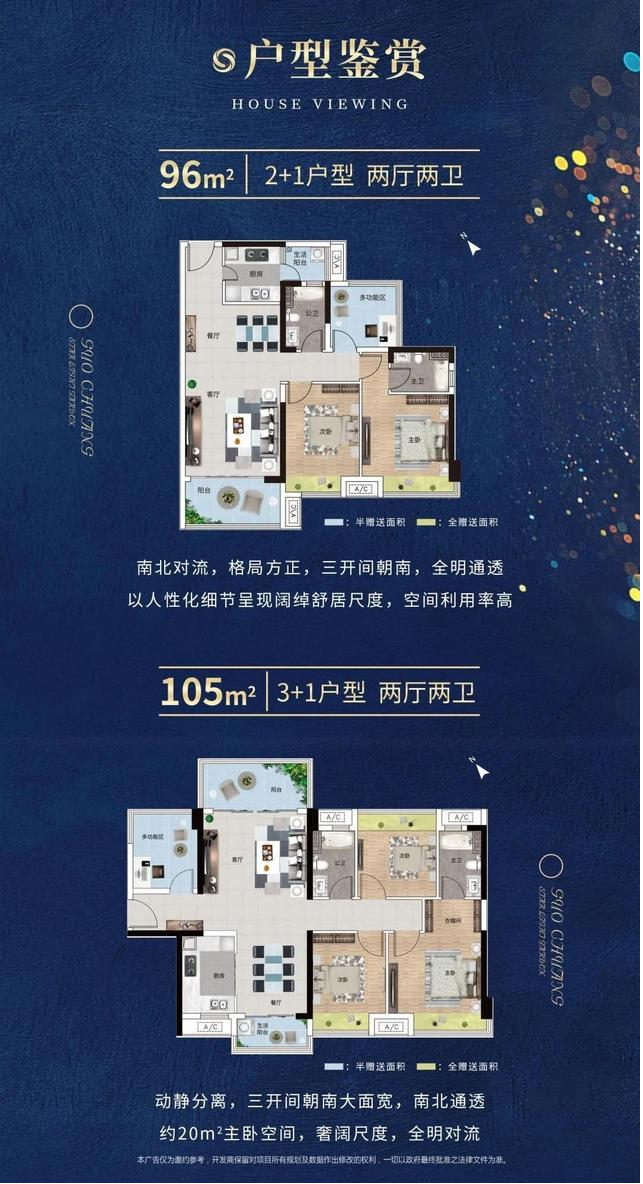 3、不同户型的面积尺寸、功能布局、空间分割等均有不同;即使同一户型,也因所在楼栋、楼层等不同,局部结构、面积、朝向等也有差异,敬请特别留意。