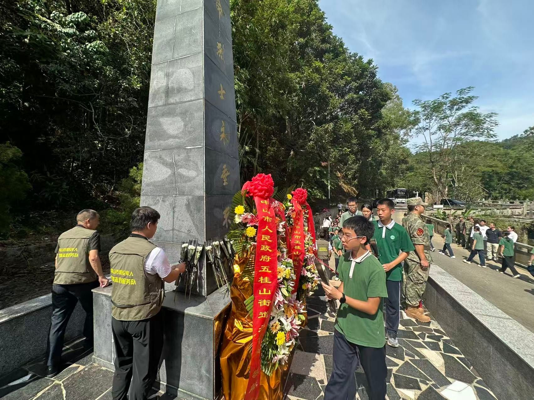 中山港街道在大环村石鼓烈士公园庄严举行祭扫活动,组织退役军人、师生代表等向烈士纪念碑鞠躬默哀、敬献鲜花,并开展志愿服务活动,清洁维护烈士纪念设施。五桂山街道在石莹桥十六烈士纪念碑前举行向人民英雄敬献花篮仪式,以最庄重的仪式致敬英烈、传承精神,凝聚奋进新征程的磅礴力量。三角镇、阜沙镇、小榄镇、三乡镇等地也分别组织党政干部、退役军人、烈属代表、学生等开展烈士纪念活动,回顾先烈事迹,弘扬革命精神,激发奋进力量。