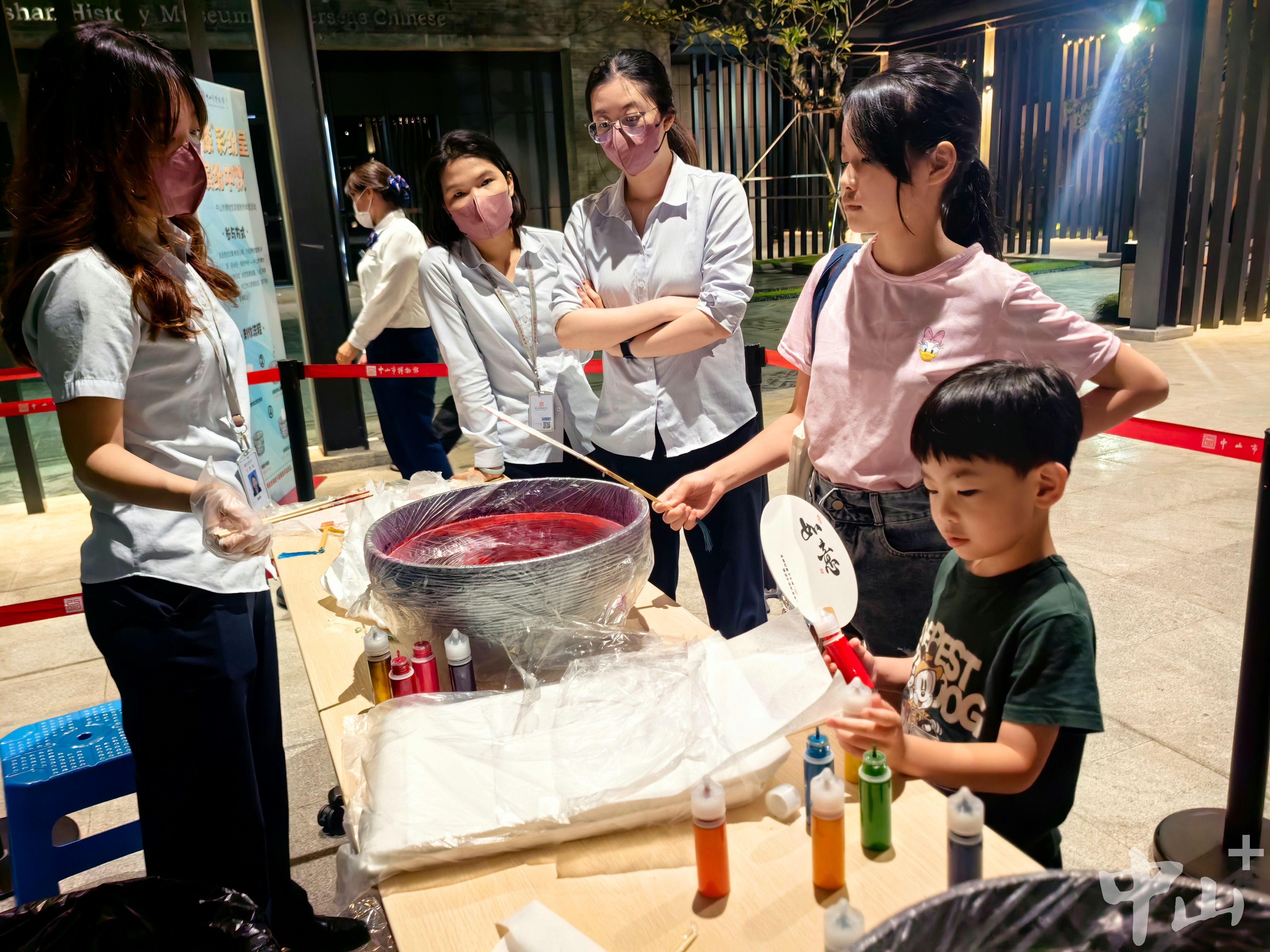 音乐会之外,丰富的夜场互动体验同样吸引目光。漆扇制作体验活动中,参与者只需将原创参观心得、博物馆介绍等文案,带“‘漆’彩纷呈 缤纷中秋——中山市博物馆漆扇制作体验活动”标签发布至朋友圈、小红书等社交平台,经工作人员核验后,即可亲手制作专属漆扇;集章活动则推出多款特色印章,观众可自备纸张或集章册参与。