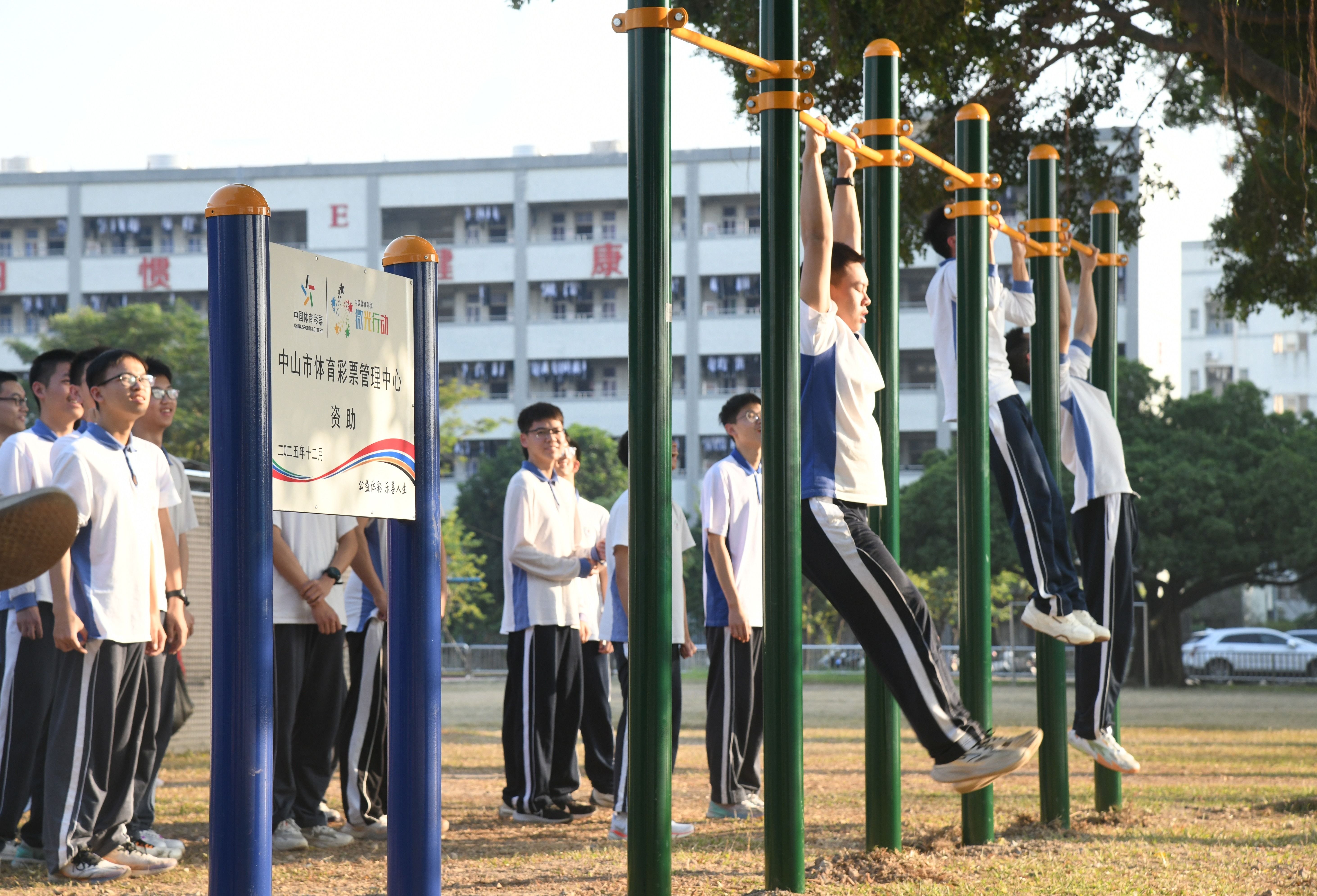 冬日暖阳下的中山市小榄中学操场活力满满,学生们在崭新的连体单杠上奋力完成引体向上,计数声此起彼伏。