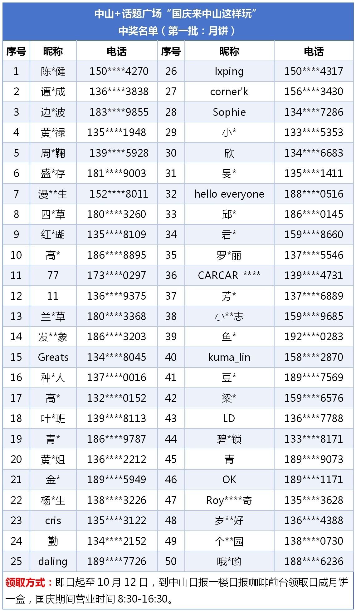 (中奖结果将为原推文公布,用户凭中奖短信和中奖姓名电话领取,具体以通知为准。)
