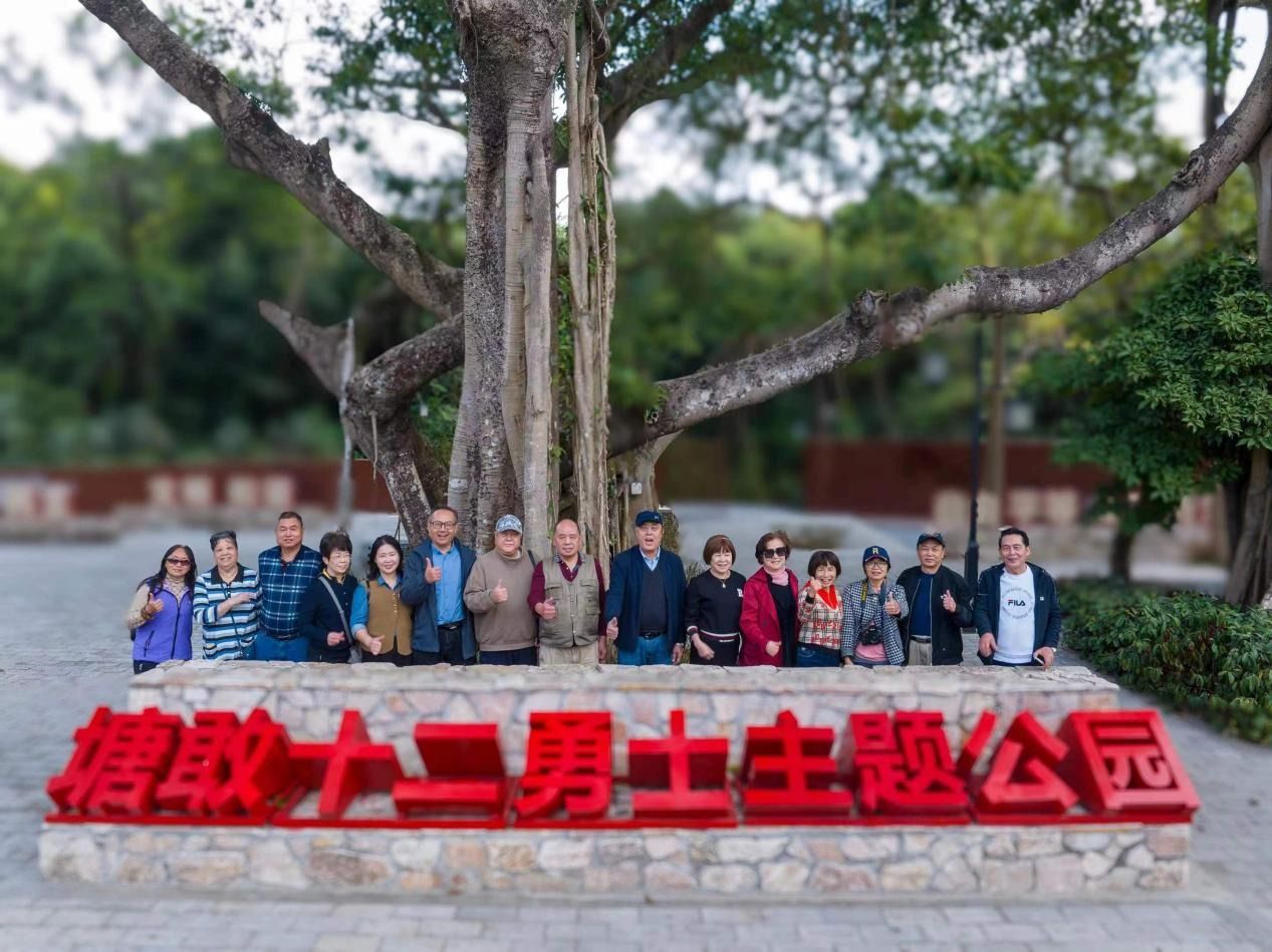 塘敢十二勇士后代在主题公园合影