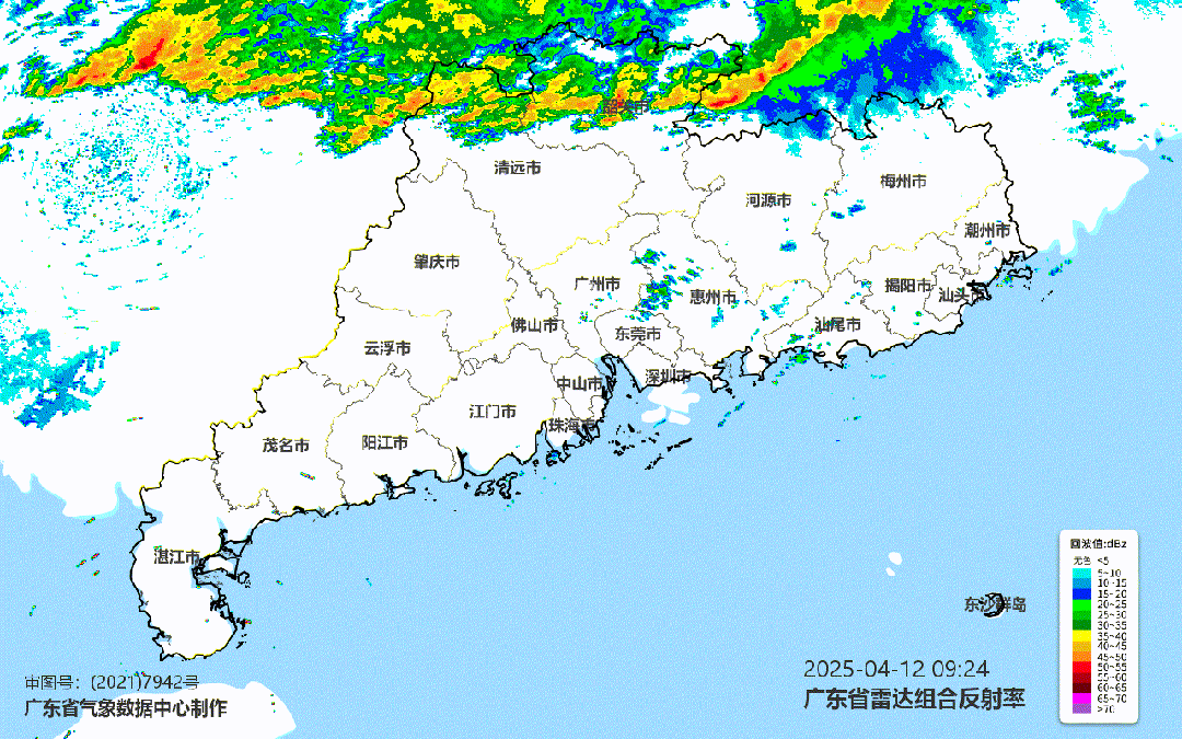 今天(4月12日)早晨,强飑线(带状强对流云系)已冲入粤北大门,势如破竹,预计中午影响珠三角,下午影响南部市县,傍晚前后抵达沿海,雷雨时伴有8~10级局地12级雷暴大风、短时强降水、局地冰雹等强对流天气。