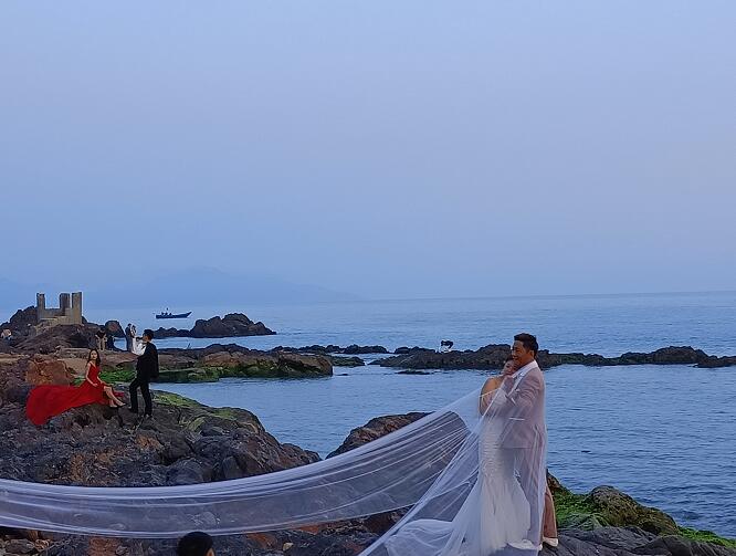 在马宫美丽的海边,我会等你。无论你是前世爱人,今生的朋友,来世的恋人,或是雨后的一道彩虹,甚至是闷热的天气吹来一缕凉风。海边礁石印青苔,千奇百怪,山岛竦峙,树草丰茂,渔船游弋,或波浪腾云,或平静如淑女,皆美不胜收,令人喜爱。尤其将要成婚的新人,几乎每天都有人来这片海取景拍婚纱照。在沙滩,在礁石,在树下,见证他们爱情的甜蜜,还有他们留给这片海灿烂的笑容,对美好生活的憧憬。
