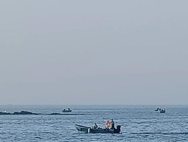 早晨的海还是渔民捕捞的时间,离岸不远处,就是渔场,十多只大小不一渔船波浪起伏海面上穿梭撒网捕鱼,引来无数的海鸟在渔船游弋的周围海面盘旋,猎捕在海面游浮的鱼虾,哒哒的马达声、鱼跳鸟飞的热闹画面,生动有趣,十分美好。见到这么好的景观,就有了一个念想,你若来,该有多好。