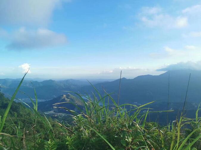 脚下是连绵的山脉,向天边蔓延,渐渐隐入暮霭。天空触手可及,像少年般一样清新。晚风吹来,氤氲着淡淡的茶香。放眼望去,漫山的绿,茶叶的绿 。