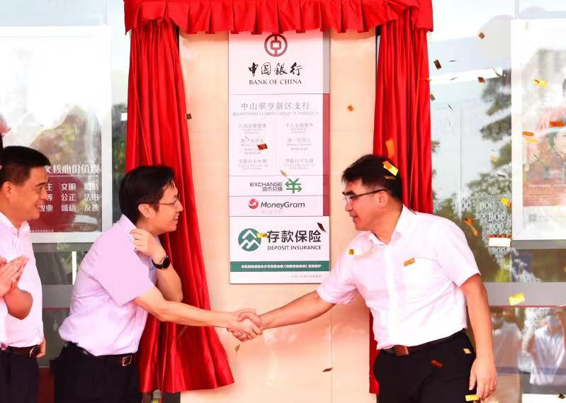 8月31日,经过前期的精心筹备和试业,中国银行中山翠亨新区支行正式开业,中山市委副秘书长、翠亨新区党工委书记梁克,翠亨新区总经济师金哲、中国银行中山分行党委书记、行长秦金波一同出席开业庆典并共同为翠亨新区支行揭牌。