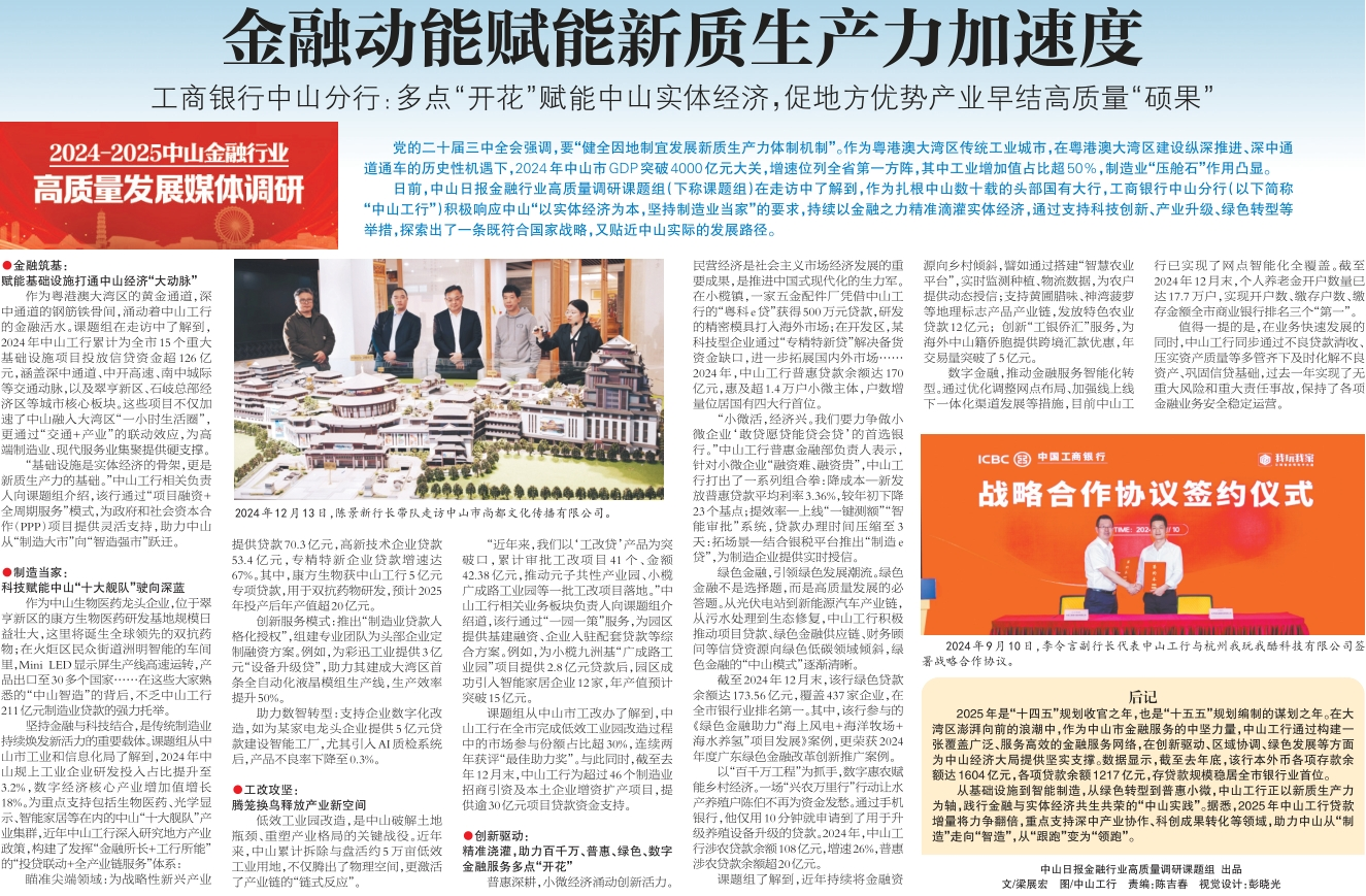 中山日报2025年3月3日中山工行金融行业高质量发展调研专题新闻版面
