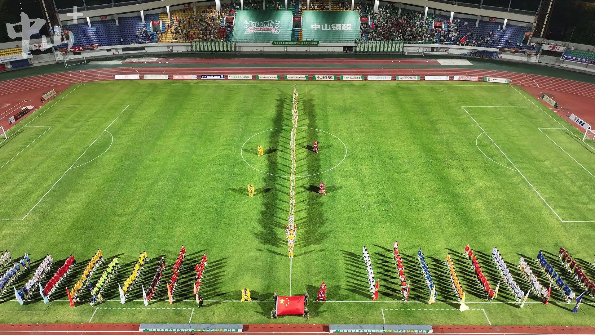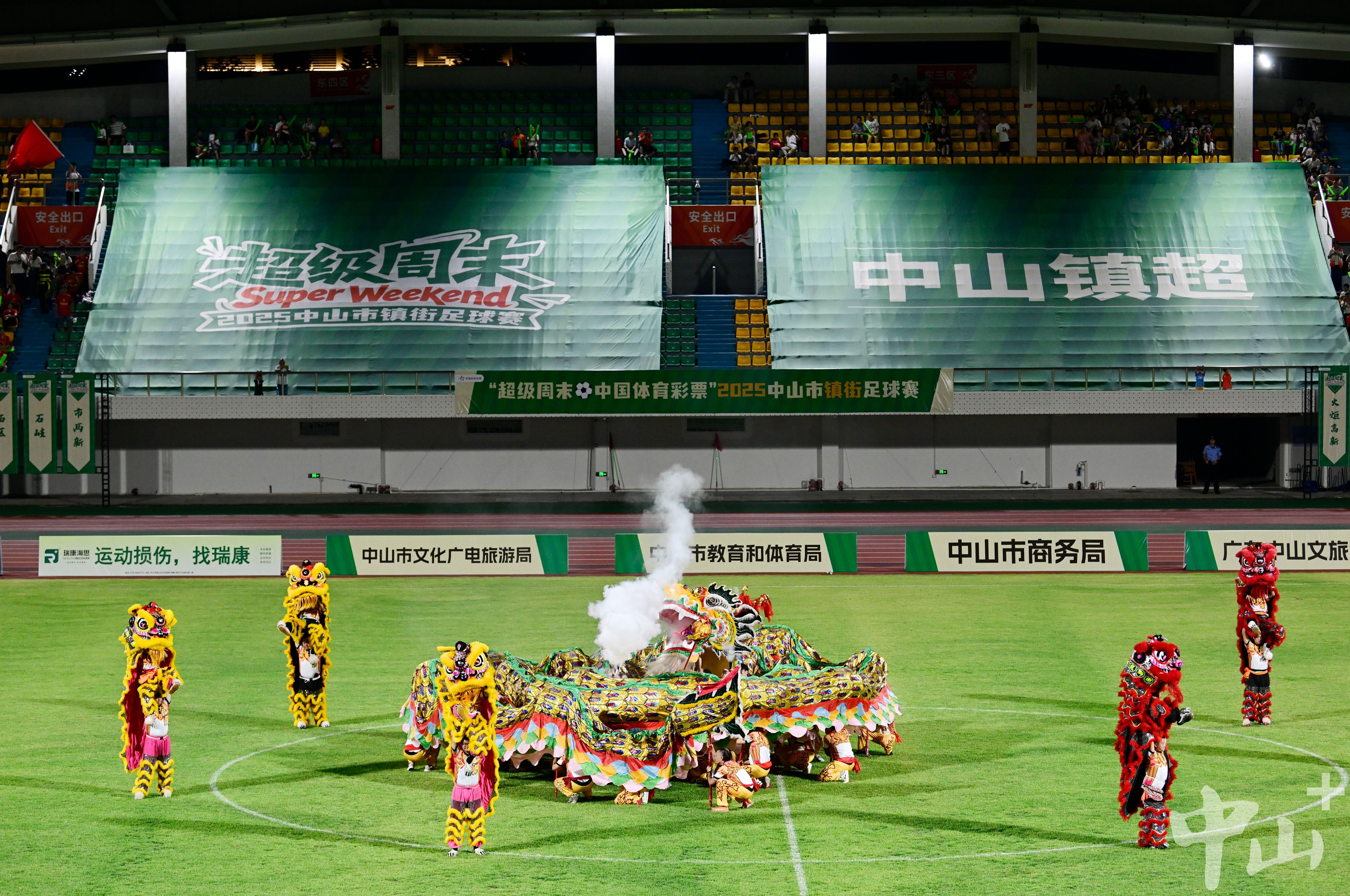 晚间7时,开幕式在一场精彩纷呈的文化展演中拉开序幕。咸水歌的水乡韵律、起湾金龙的灵动舞姿、龙狮表演的刚劲腾跃与震天鼓声……本土文化符号在体育场景中完成现代转译,既让现场观众感受到中山深厚的文化底蕴,也为接下来的足球赛事注入了独特的本土精神。