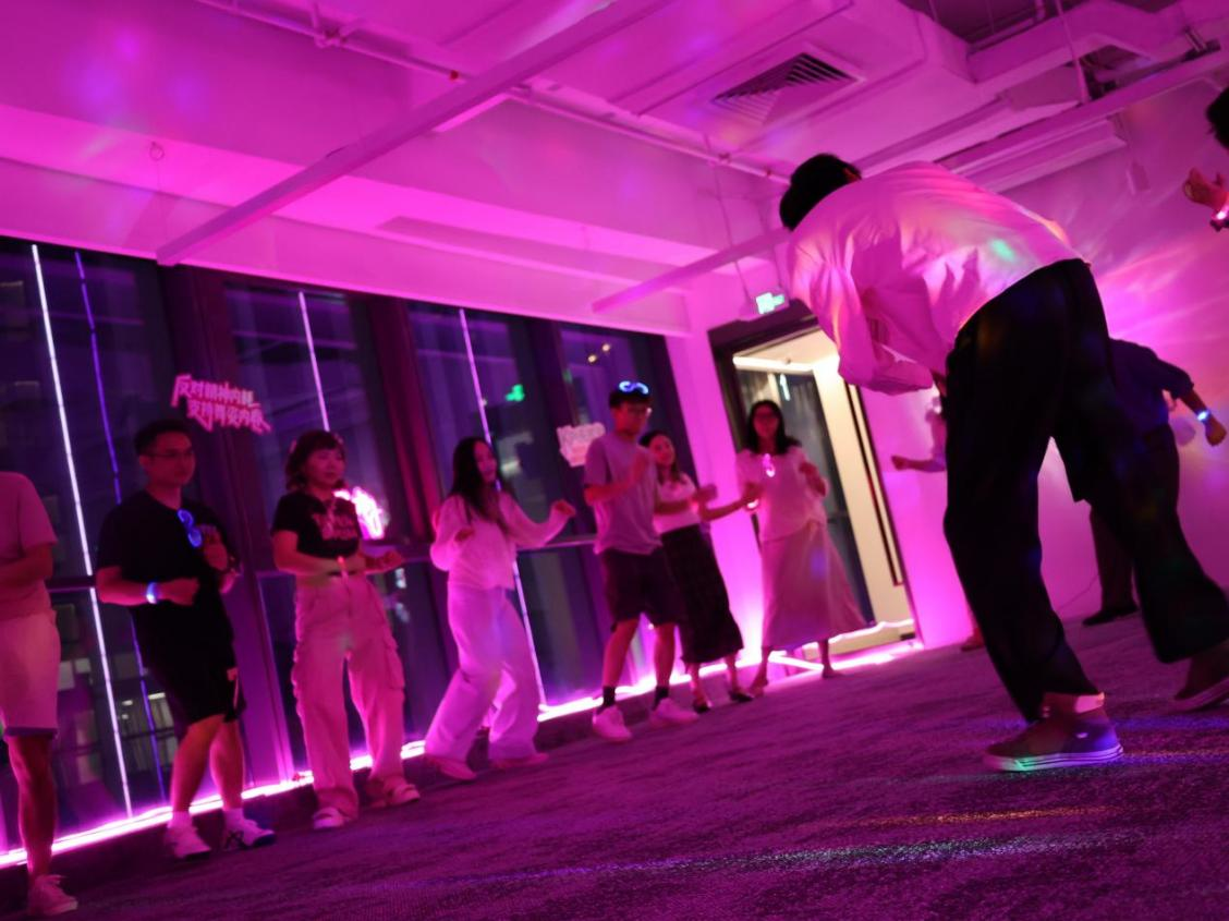 “来,大家试试牵起旁边朋友的手,跟着节奏跳起来!”在舞蹈老师的热情引导下,一场别开生面的“超PINK DISCO”舞会正在上演。参与活动的人群中,有在社区生活的业主,有刚下班的公司白领——此前,他们可能还是在金鹰里相遇不语的陌生人,此刻却因一段舞蹈成为了朋友。