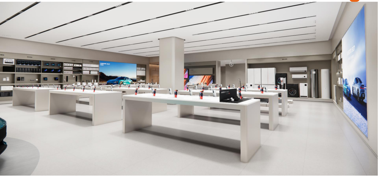 小米之家-中山石岐万象汇汽车体验店定位 “人车家全生态” 体验中心,占地500多平方米,是中山地区标杆级小米门店。该体验店打破传统品类边界,通过三大功能分区实现 “看车、选数码、体验智能家” 的一站式服务: