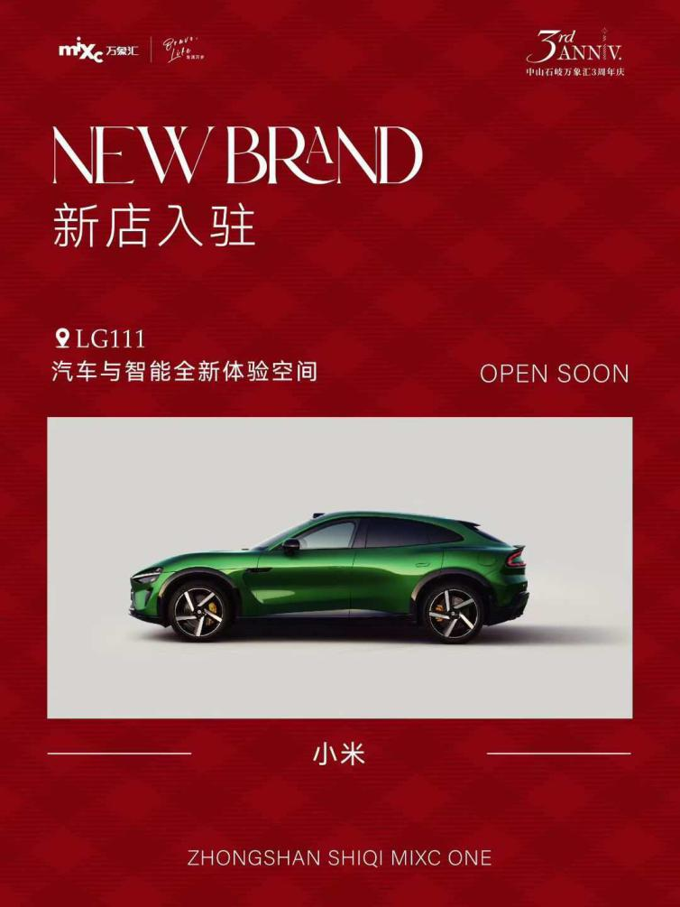 笔者最新获悉,由中山数码销售头部企业广东天讯达科技投资打造的小米之家-中山石岐万象汇汽车体验店预计于 11 月 25 日(准确时间以官宣为准)正式开业,届时将为大湾区消费者带来智能出行与家居生活的融合新体验。