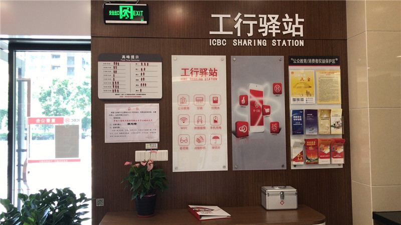 中山工行在“工行驿站”、柜台醒目位置布放党员示范岗标识,党员上岗期间佩戴党徽,为公众提供志愿服务(免费提供饮用水、手机充电、休息区、复印、雨伞等)。
