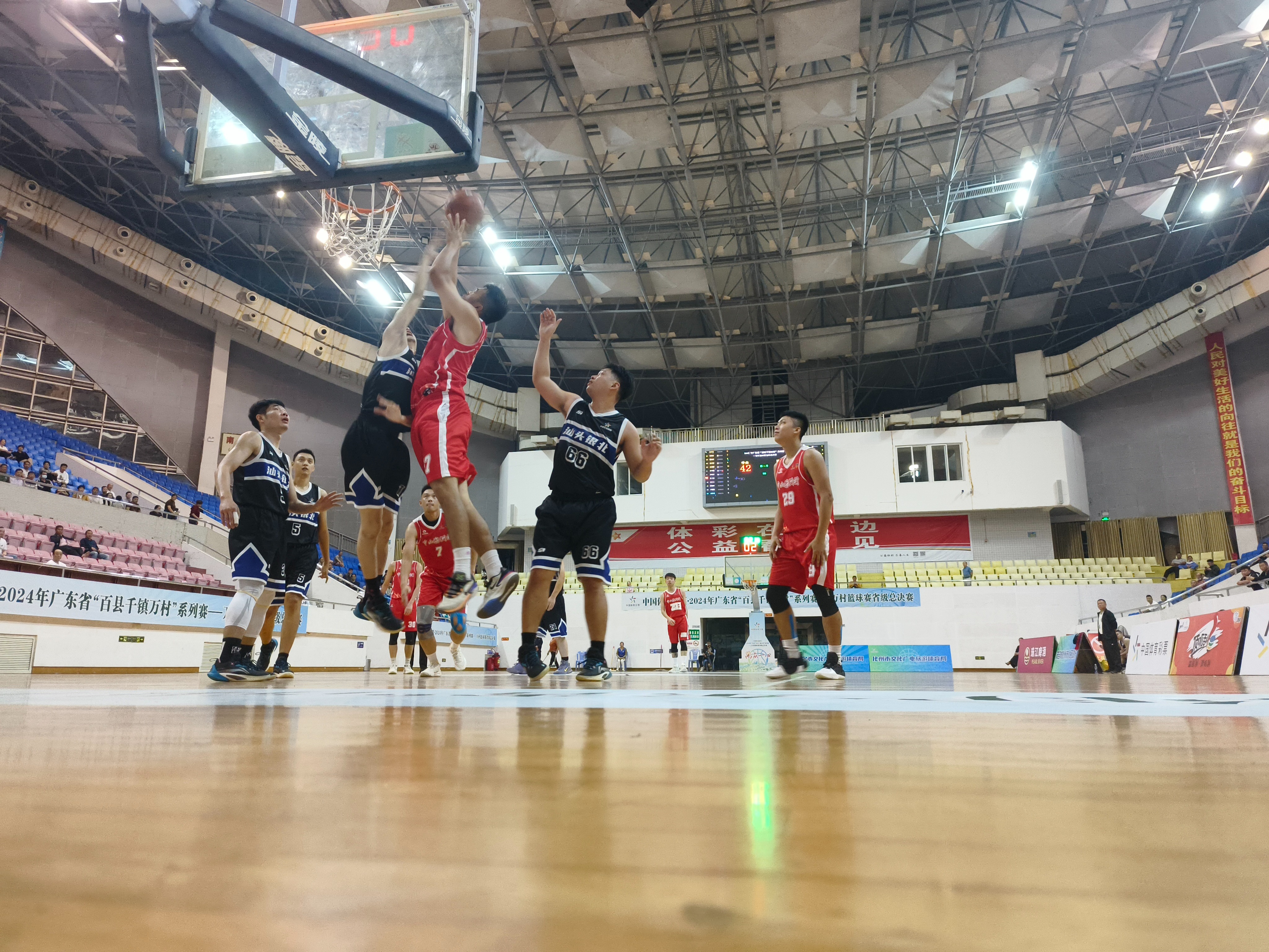 比赛开局,汕头银北队跳球获球权,遗憾的是转瞬间就被古镇海洲村队抢断得手。随后,古镇海洲村队连续快攻,打出了19:6的小高潮,首节以38:16领先对手;第二节,汕头银北村队奋力反击,快速突破,一度将比分缩小,不过,在袁锦耀三分雨的还击下,半场仍以39:61落后。