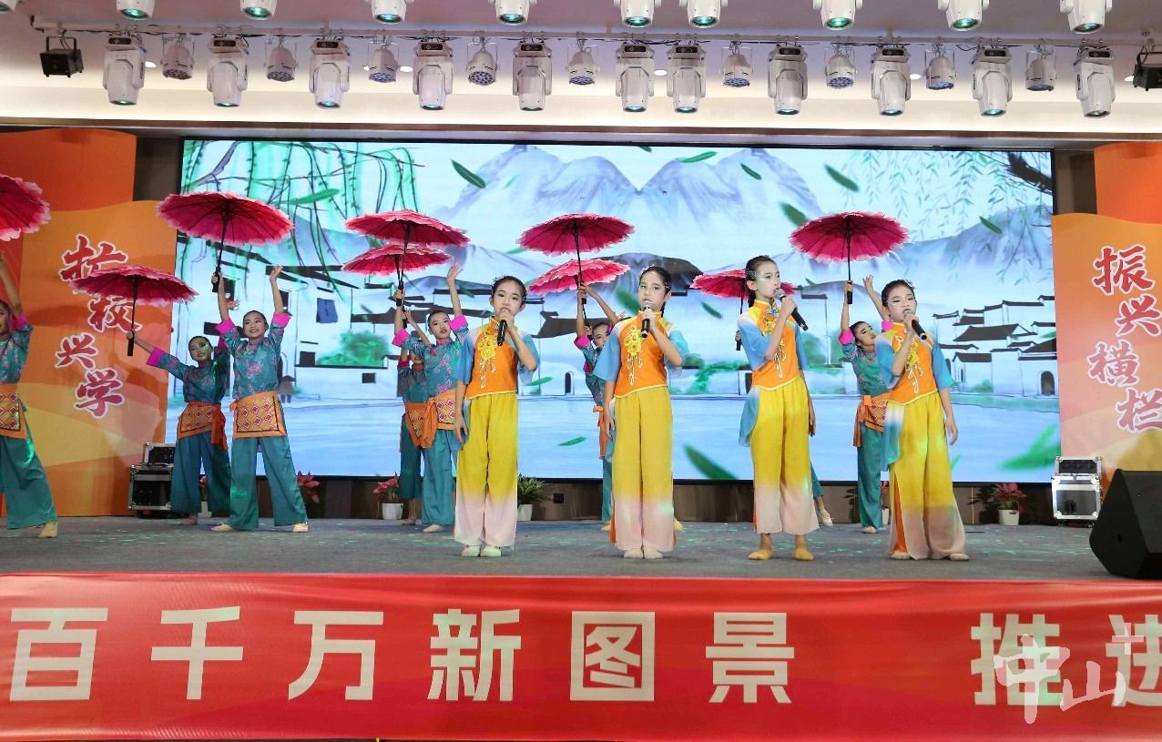 教育工作者与学子们以文艺表演致敬善举:横栏中学的舞蹈《相亲相爱一家人》传递着同心协力的温暖,教育系统的群舞《光亮》诠释着慈善带来的希望之光,独唱《把未来点亮》更唱出了青少年对美好明天的憧憬。横栏中学校长汪培在发言中动情表示,新教学楼“思泽楼”与宿舍楼“恩泽楼”的启用,让“住得舒心、学得安心”的愿景成为现实,全校师生将以感恩之心潜心向学,不负社会重托。