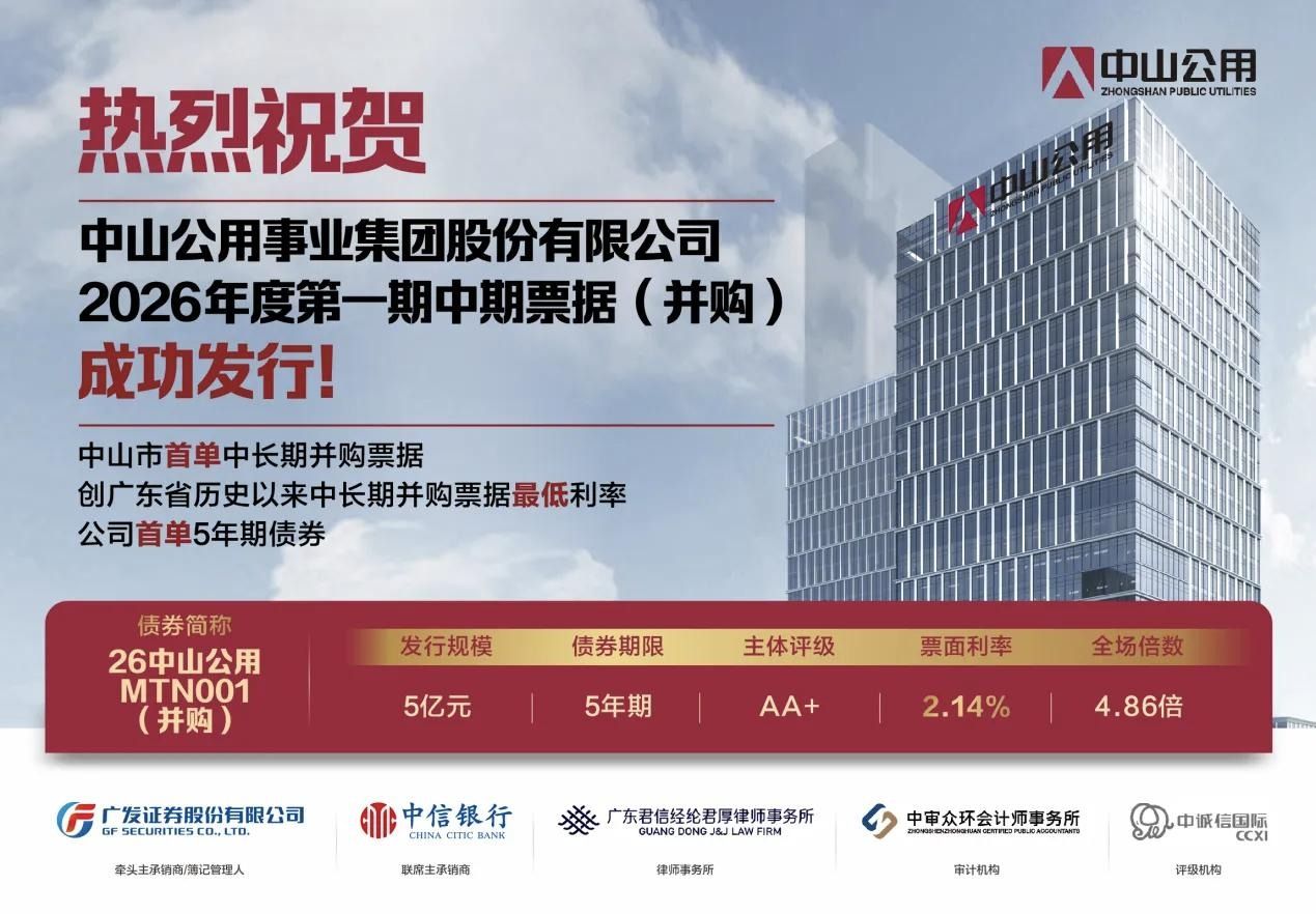 公用集团聚焦“五新公用”发展思路,加速构建“公用事业、公用科技、公用资本”三位一体发展新格局,全面启动“一个总部中心”与广州、上海、成渝“三大区域中心”的全国化战略协同。在资本运作方面成效显著,一季度累计发行债券15亿元,其中成功发行中山市首单中长期并购票据,发行规模5亿元,全场认购倍数达4.86倍,票面利率低至2.14%,刷新广东并购票据历史最低利率纪录。