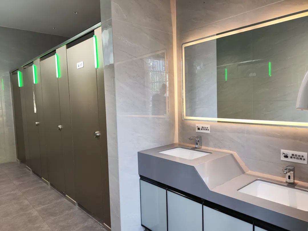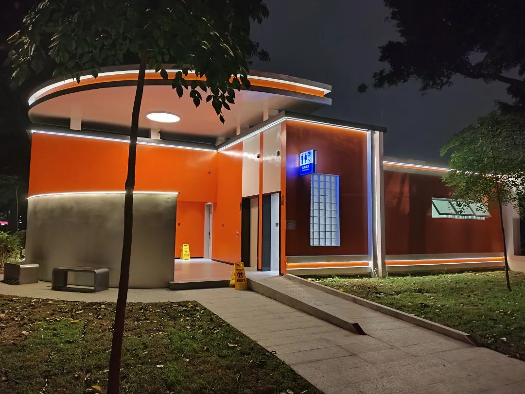 市法治文化公园公厕外观还安装了灯带,夜晚,这座会“发光”的公厕,不仅让市民更容易找到其位置,还增加了夜间景观效果。