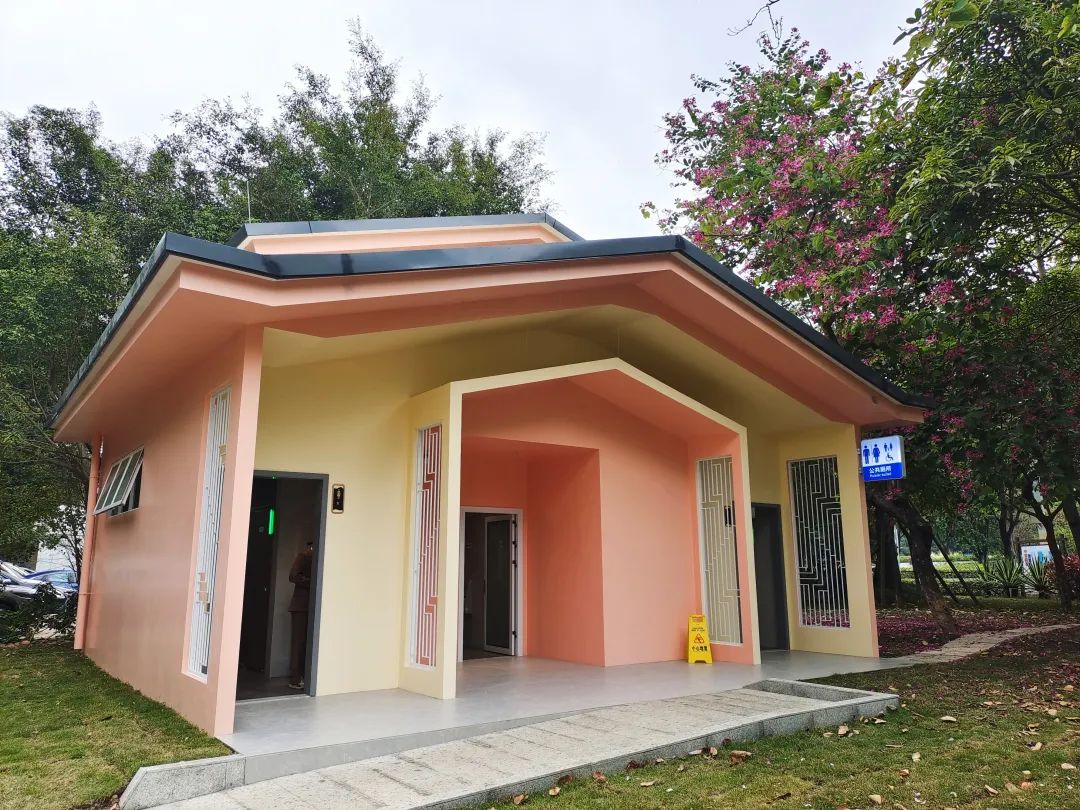 “这7座公厕里,有6座都是选址新建的。前期选址调研结合了群众需求,因地制宜对公园绿地、边角地块进行仔细梳理和充分利用。”刘胜介绍,以前的公厕色调相对沉稳、选址隐秘,不少市民都难以发现公厕位置。为此,这批新建的公厕基本坐落在街心公园、靠近城市主干道的位置,外观分别采用了“环卫橙”“园林绿”“公主粉”等不同色调,与周围环境融合协调。