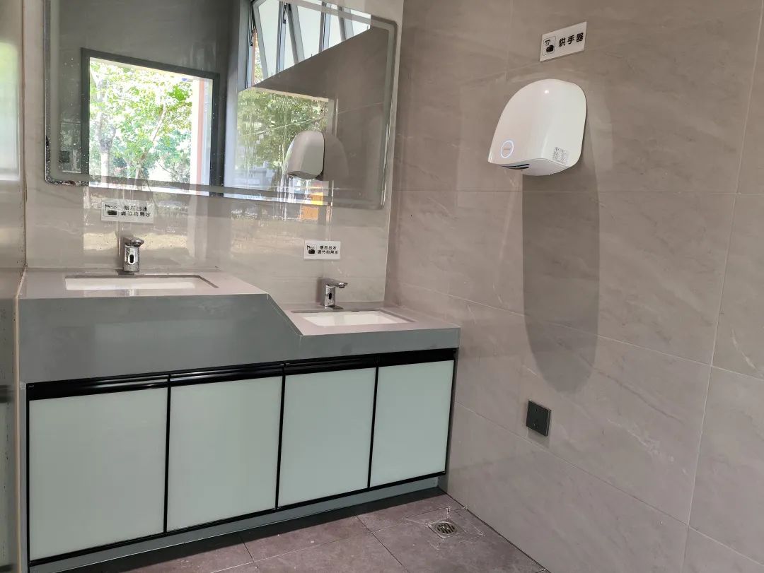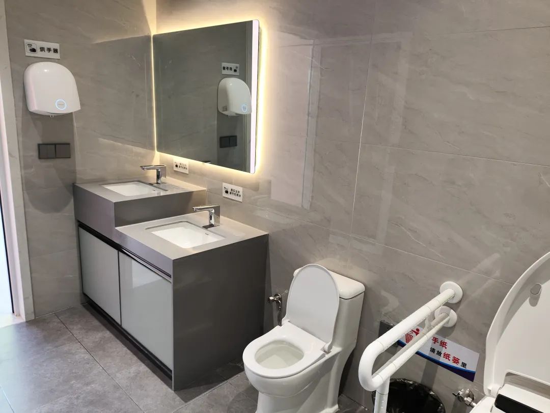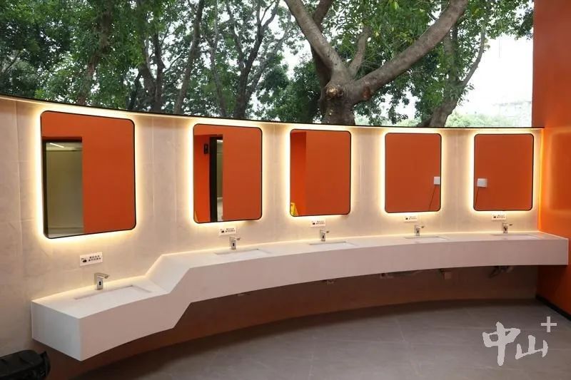 在中山市法治文化公园,一座以橙色、白色为主调的现代化时尚公厕十分吸睛。走进公厕,LED镜子、感应洁具、除臭设备、烘干器、厕位占用指示、求助按钮等一应俱全。同时,这也是城区首个配备母婴室的市政公厕,配置了婴儿护理台、哺乳椅等,致力打造温馨舒适的环境。第三卫生间与母婴间均采用了按键自动门,从细微处提升群众幸福感。“这里原来的公厕只有两个隔间,大约三四平方米。新公厕在原址扩建至130平方米左右,是目前城区最大的市政公厕。”中山市环境卫生管理中心股长刘胜介绍。