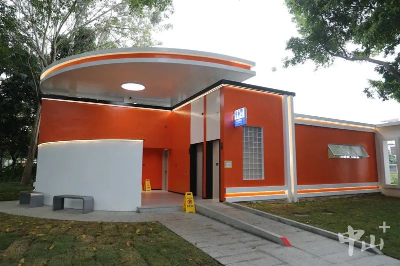 中山市法治文化公园公厕以橙色、白色为主调。记者 王云 摄