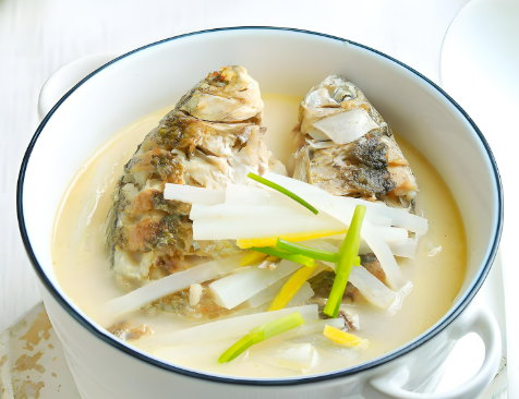 做法:煎鱼前热锅下油,放入姜片爆香,鱼煎至两面微黄(去腥提鲜),再加入沸水煮沸,汤更奶白。火煮 10 分钟后加入冬瓜、赤小豆(提前浸泡30分钟)、蜜枣,转小火煮1小时左右,加盐调味。