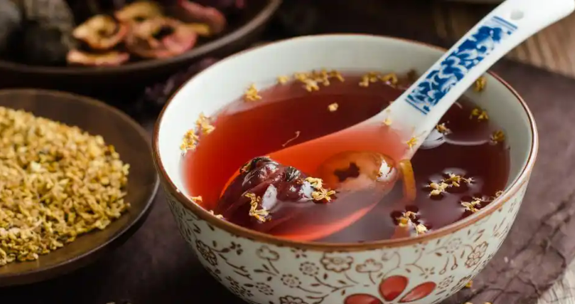 材料:乌梅30g、山楂15g、陈皮5g 、甘草3g、桂花2g、冰糖少许。