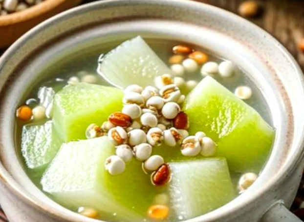材料:冬瓜600g(去皮切块后使用)、木棉花5g、薏苡仁10g、扁豆10g、灯芯草3-4扎、莲蓬5g、蜜枣1-2个(根据口味调整,避免过甜)、盐适量。