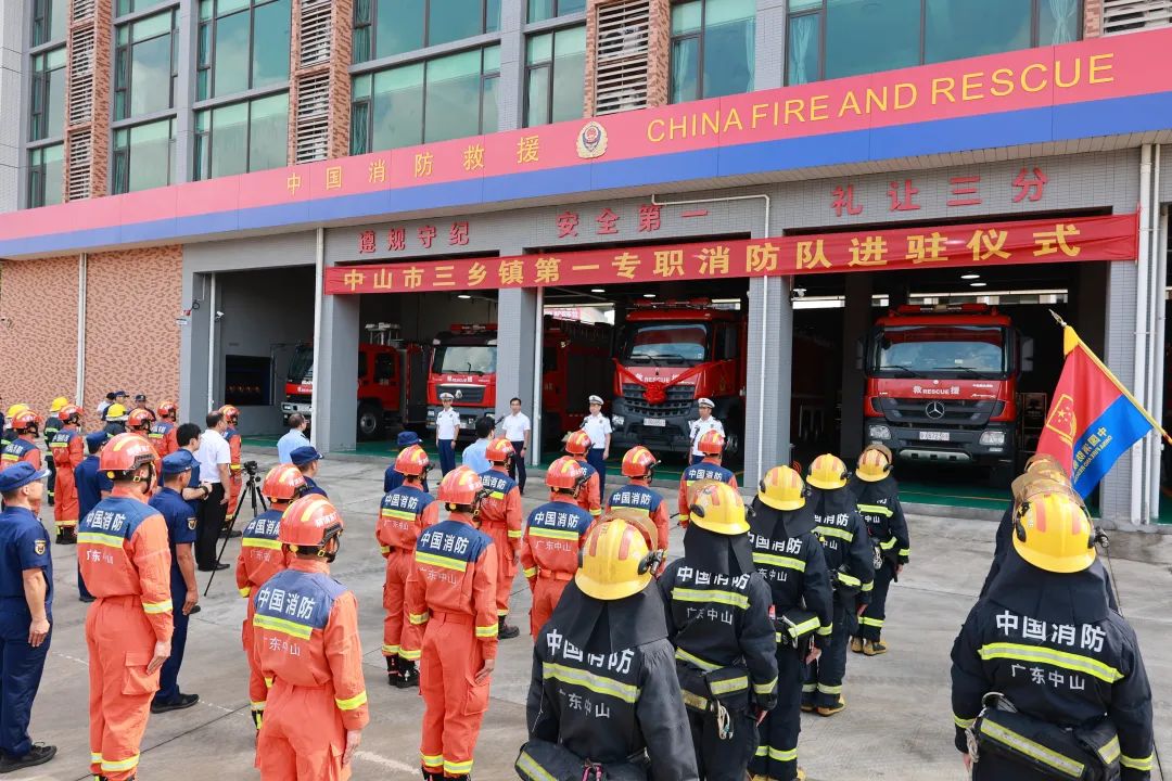 为进一步加强基层消防救援力量建设,提升全镇火灾防控和应急救援能力,8月1日,中山市三乡镇第一专职消防队举行揭牌进驻仪式。中山市消防救援支队政委周海冰、三乡镇党委书记冼智前出席仪式并揭牌。