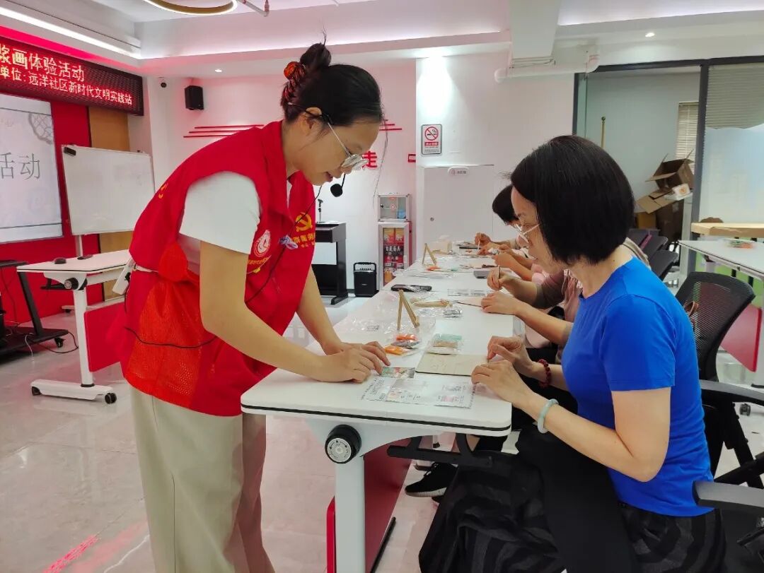 “您看这轮初升的太阳,光晕要这样层层渲染才显朝气!”“霞光的颜色可以再热烈一些,像我们年轻时那样有活力!”老人们围坐在一起,时而专注聆听,时而互相探讨,一张张纸浆画上,不仅绽放着色彩斑斓的纸浆画,更凝聚着“老有所学、老有所乐”的社区温度,让文化传承成为连接邻里情感的纽带。