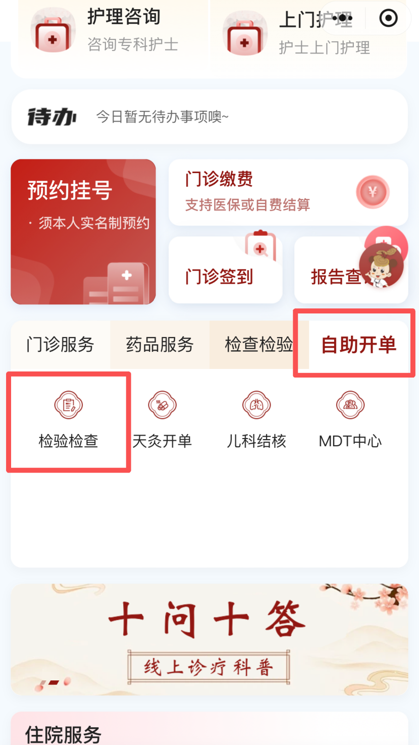 首页点击【自助开单】进入检验检查版块。