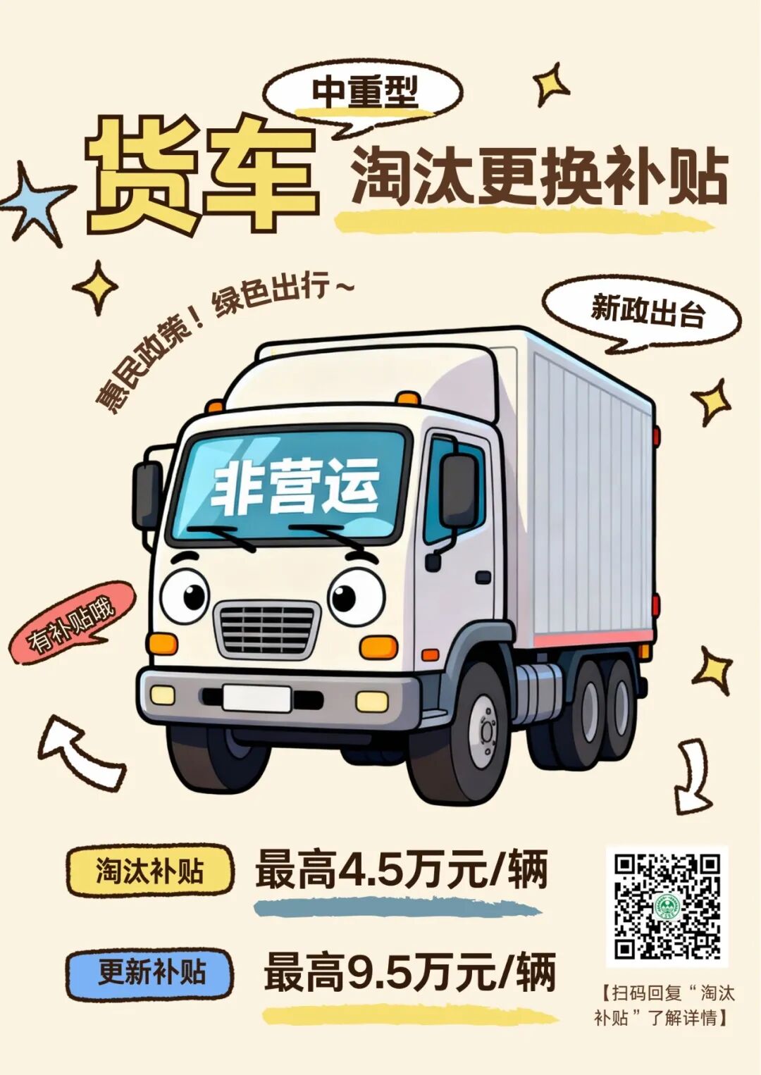 近期,广东省生态环境厅、广东省财政厅联合印发《关于做好非营运类老旧中重型货车淘汰更新补贴和大气污染物减排财政激励工作的通知》,补贴金额按车辆类型、提前淘汰时间不同,两类补贴叠加后,最高能拿到14万元。