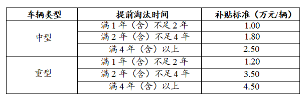 本补贴政策实施资金总额控制,优先保障国三非营运中重型货车淘汰更新补贴。国四非营运中重型货车淘汰更新补贴采取“先到先得”的激励政策,若地市用完补贴资金总额度,则不再受理补贴申请。