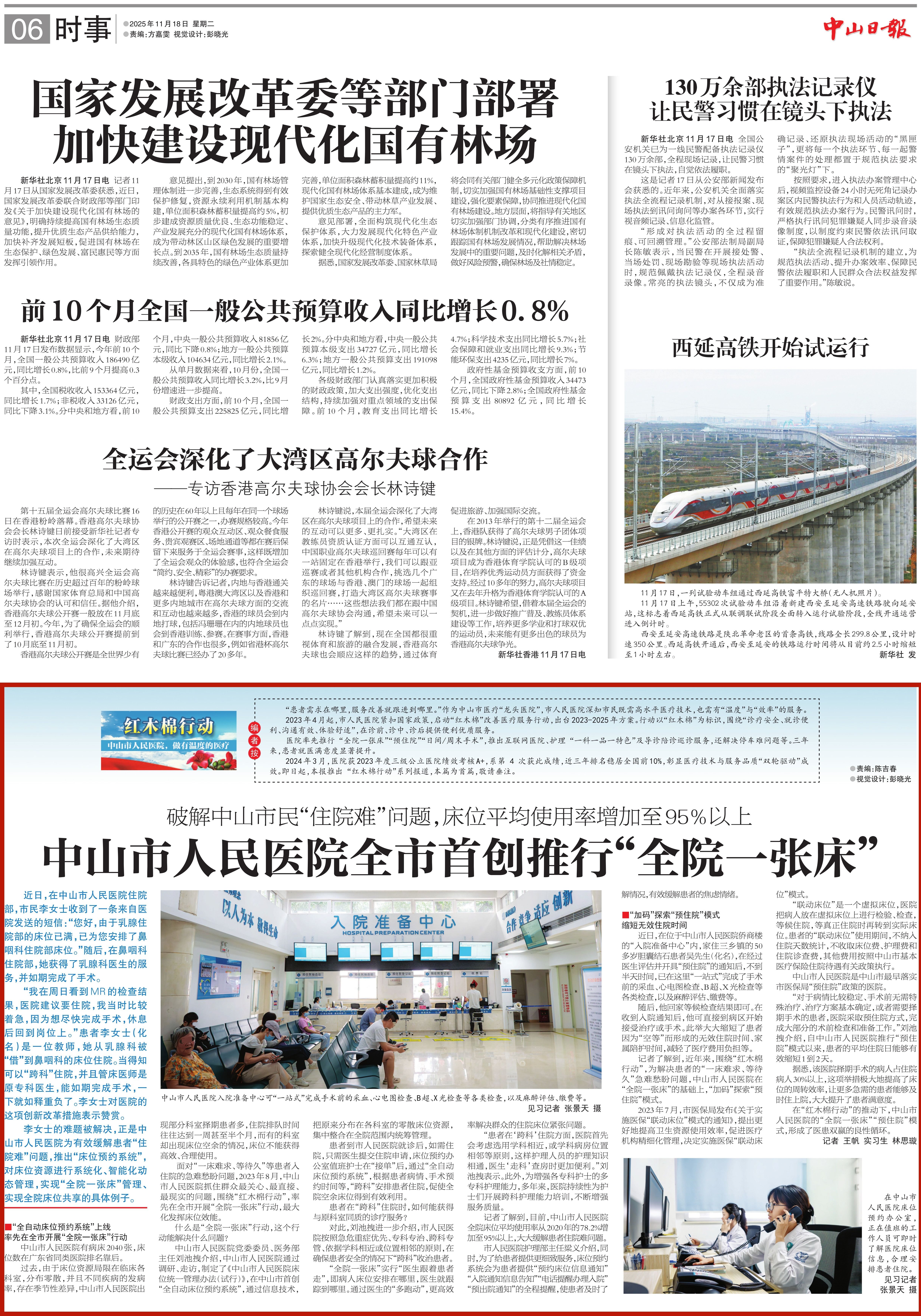 面对“一床难求、等待久”等患者入住院的急难愁盼问题,2023年8月,中山市人民医院抓住群众最关心、最直接、最现实的问题,围绕“红木棉行动”,率先在全市开展“全院一张床”行动,最大化发挥床位效能。