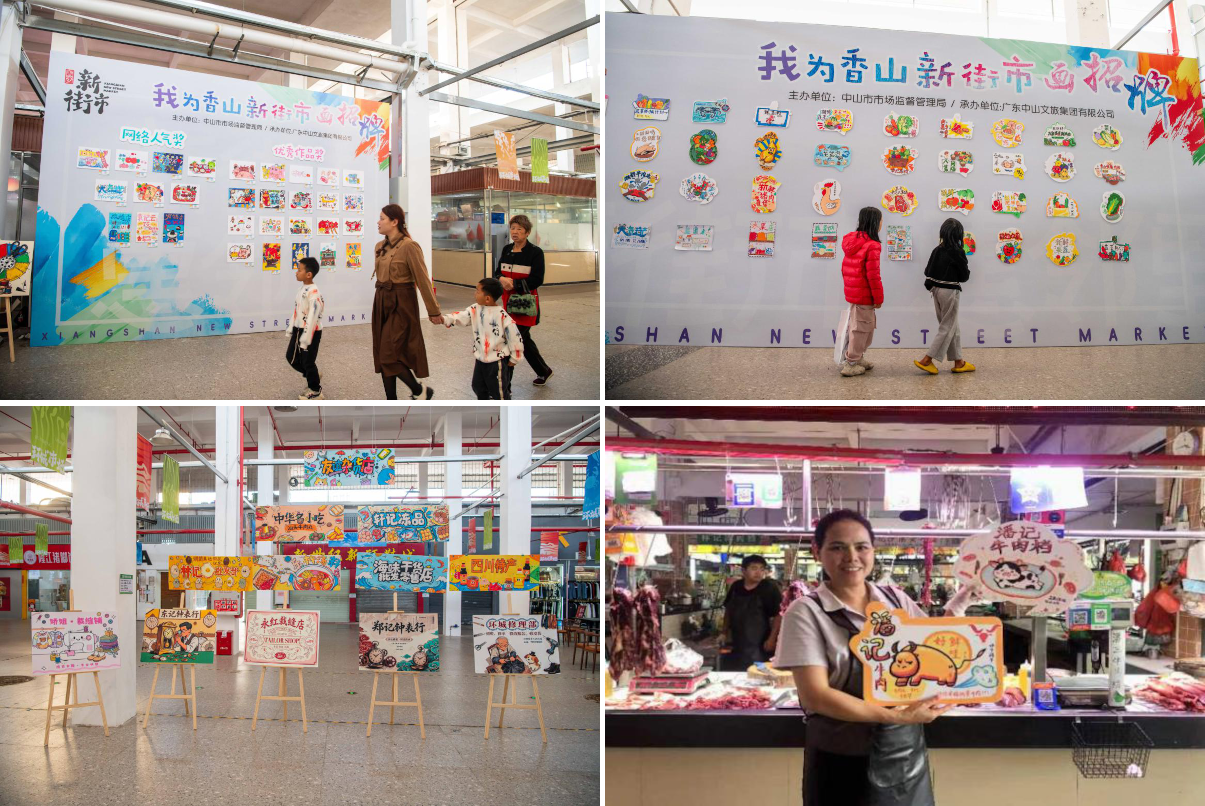 11月18日在环城市场举办的“我为香山新街市画招牌”活动,吸引了40多名大学生和小学生现场画招牌,这些招牌与商户的产品紧密结合,又生动形象、创意十足,引来不少市民驻足欣赏,活动结束后招牌将成为市场商户们另类的“门面担当”,为这个充满烟火气的地方增添了一道独特的艺术风景线。